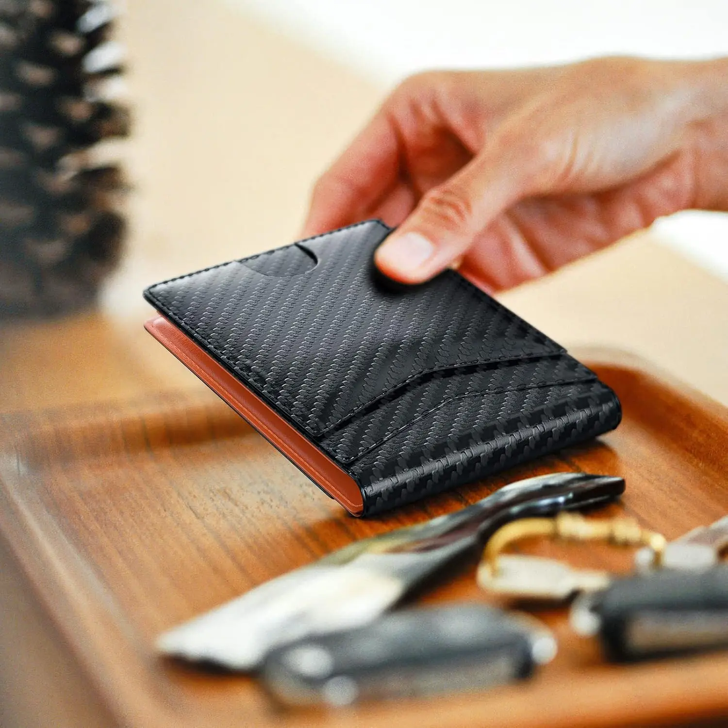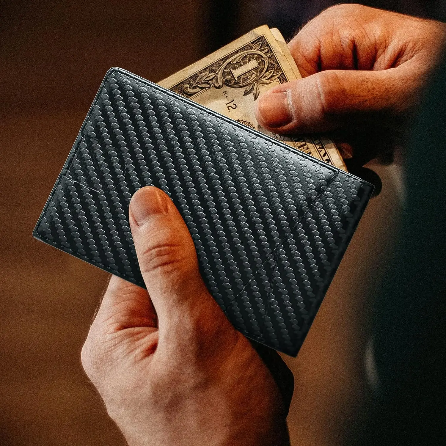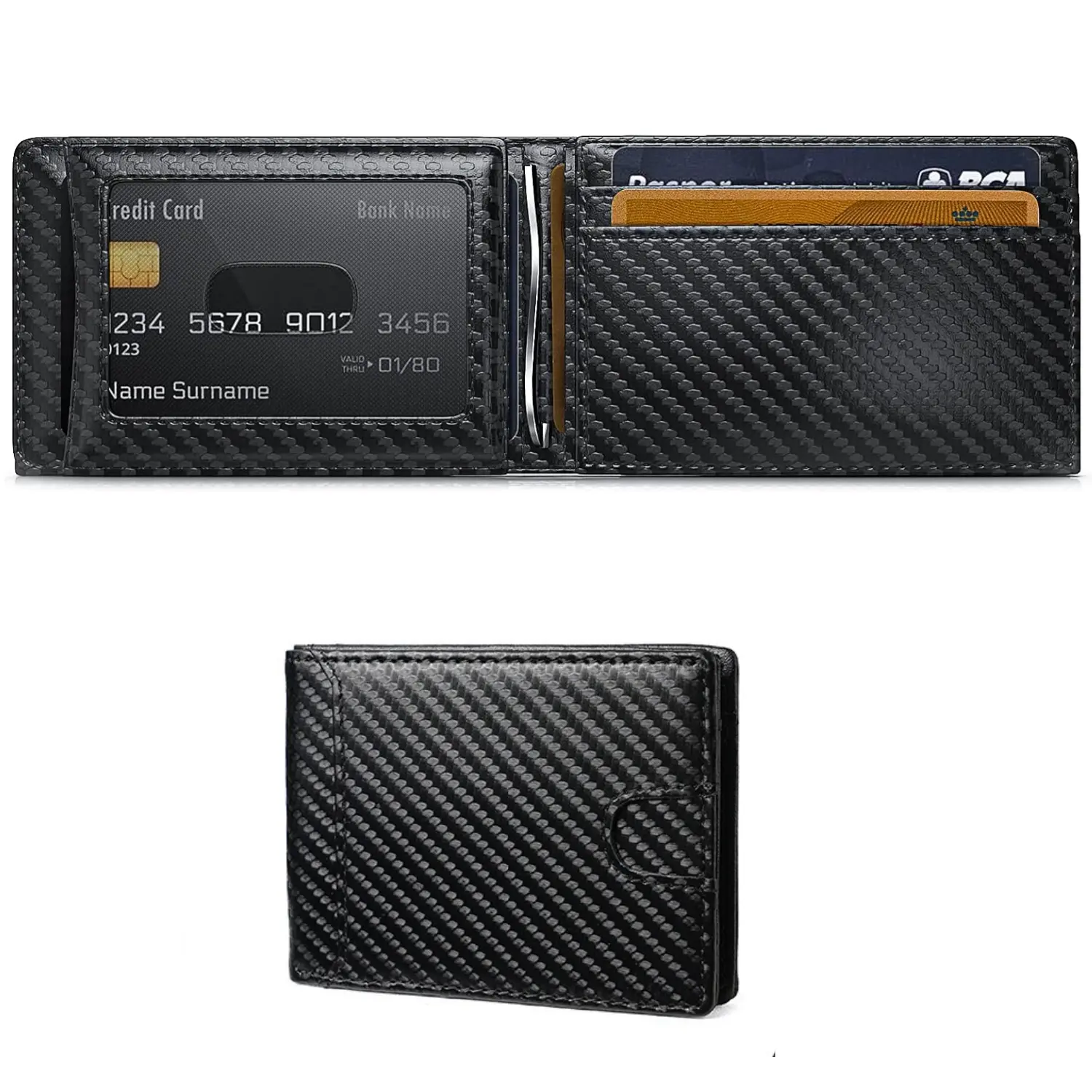·Carbon fiber: Adds a modern touch to the wallet.