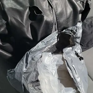 La chaqueta esta muy bien confeccionada el problema es que no la embalan bien solo l envían en una bolsa de plástico negra y ahí es el problema en el transporte en la manipulación del viaje y se rompe el plástico y se daña la chaqueta por eso lo estoy devolviendo