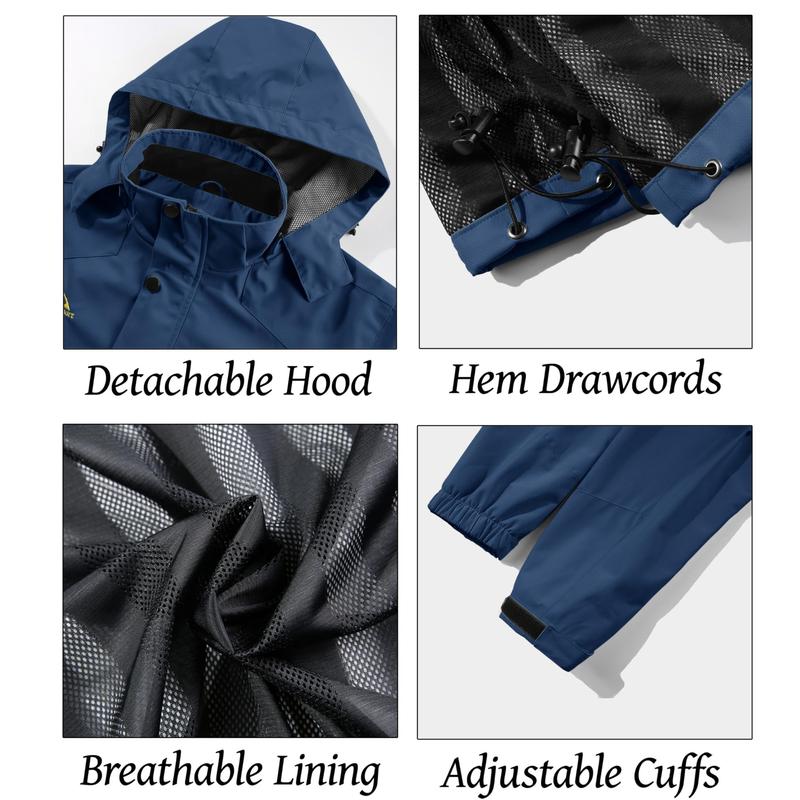 ·Men's Rain Jacket Water Resistant Raincoat Fabric: Polyester Suitable for hiking, camping, running, hunting, fishing and other outdoor activities.