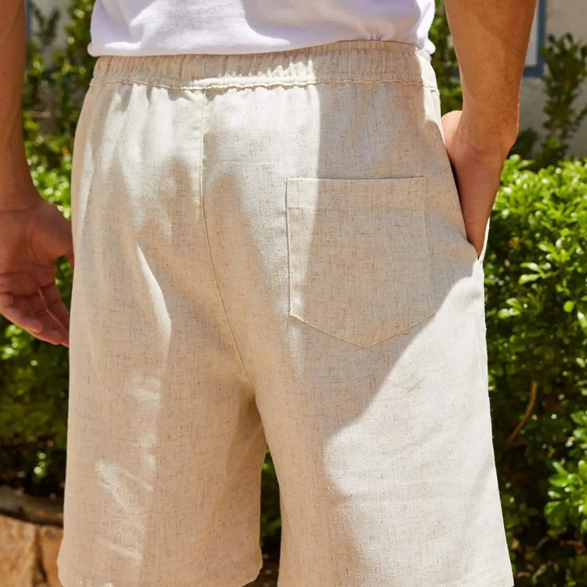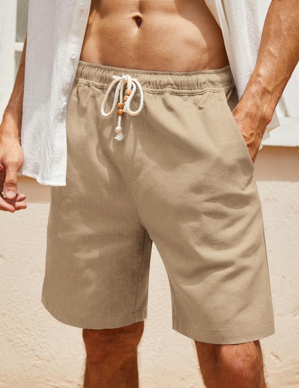 ·Multiple Occasion --- Men's linen elastic waist shorts perfect for daily wear and casual activity such as beach, school, sport, fishing, golf, running, vacation, party, lounging, cycling, or other leisure activities.
