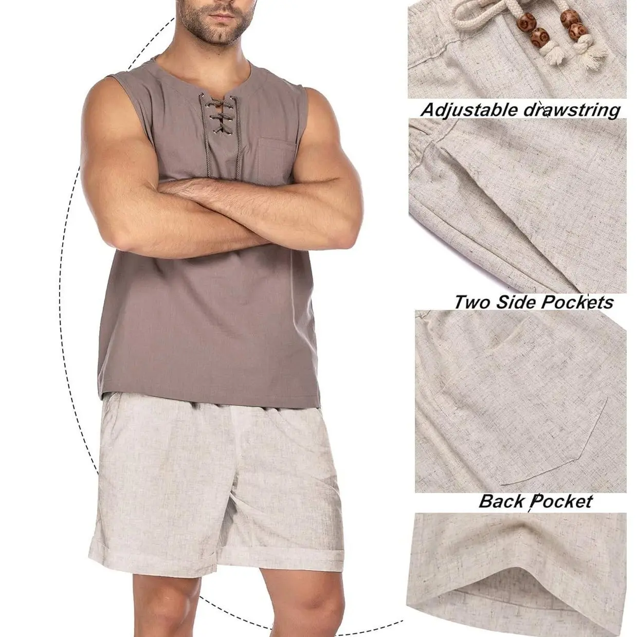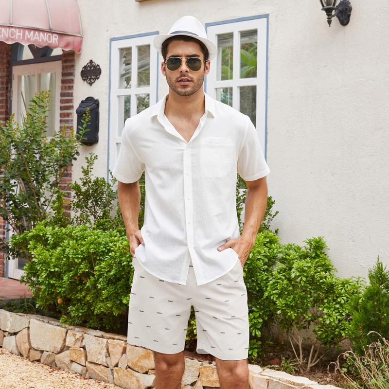 ·2 Packs Linen Shorts Design --- Simple style, double-sided slant pockets and one back patch pockets, reinforced stitching and high-performance fabric provide excellent durability, make you look great for your leisure time.