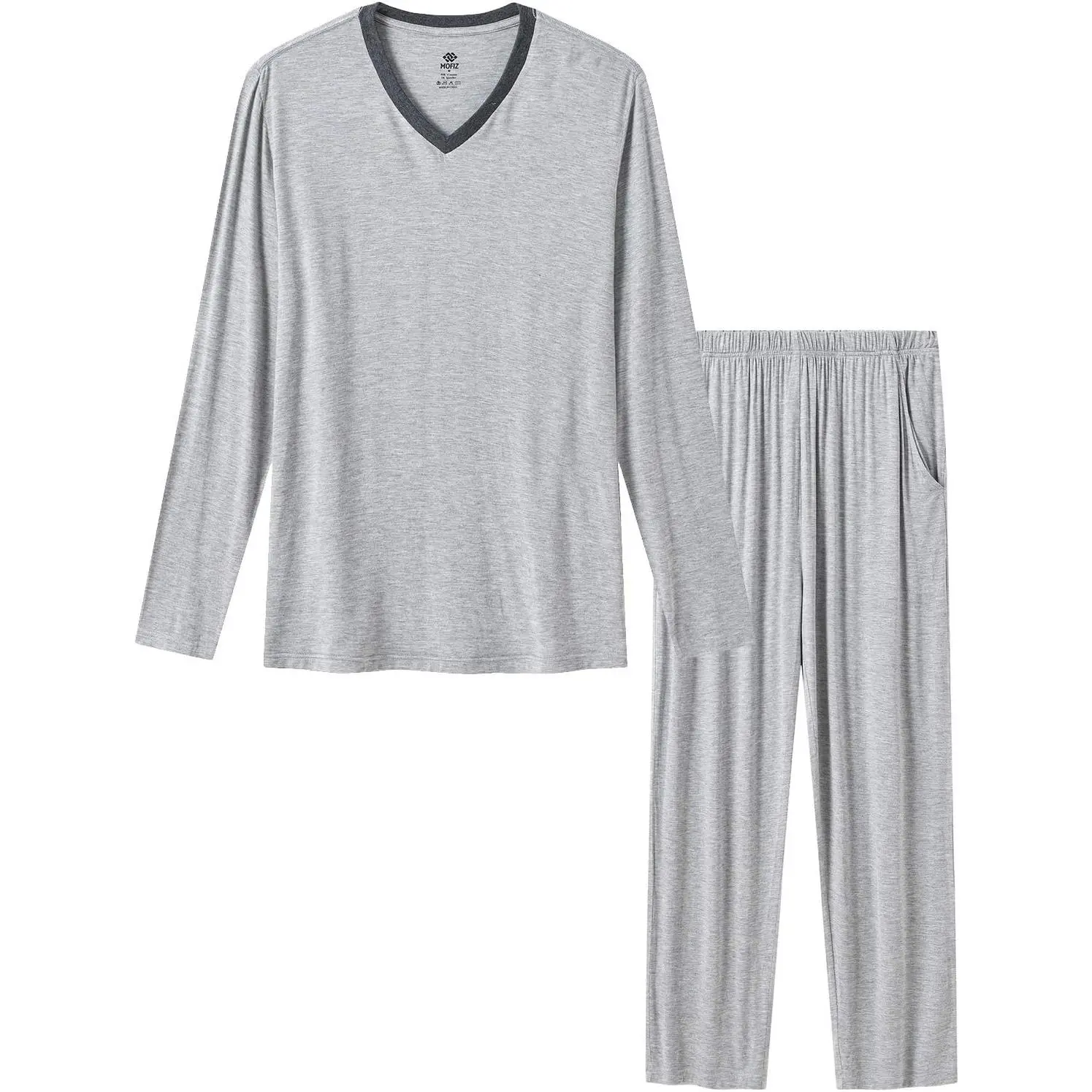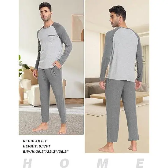 MoFiz Mens Pajama Set Long Sleeve Crew Neck 2 Piece Night suit Loungewear sets Modal Pants With Pockets Pj's Sleep for Men