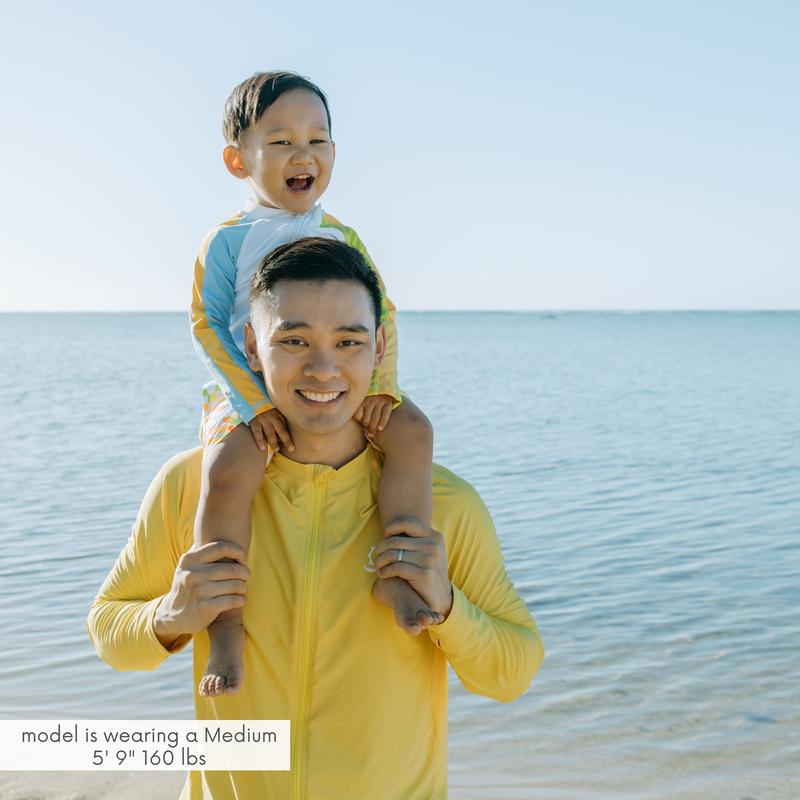 Our men’s long sleeve zipper rash guard is perfect for a day out around the beach, by the pool or at the lake to provide extra sun protection for your chest, arms and shoulders! Quick drying and comfy, it’s perfect for in and out of the water.