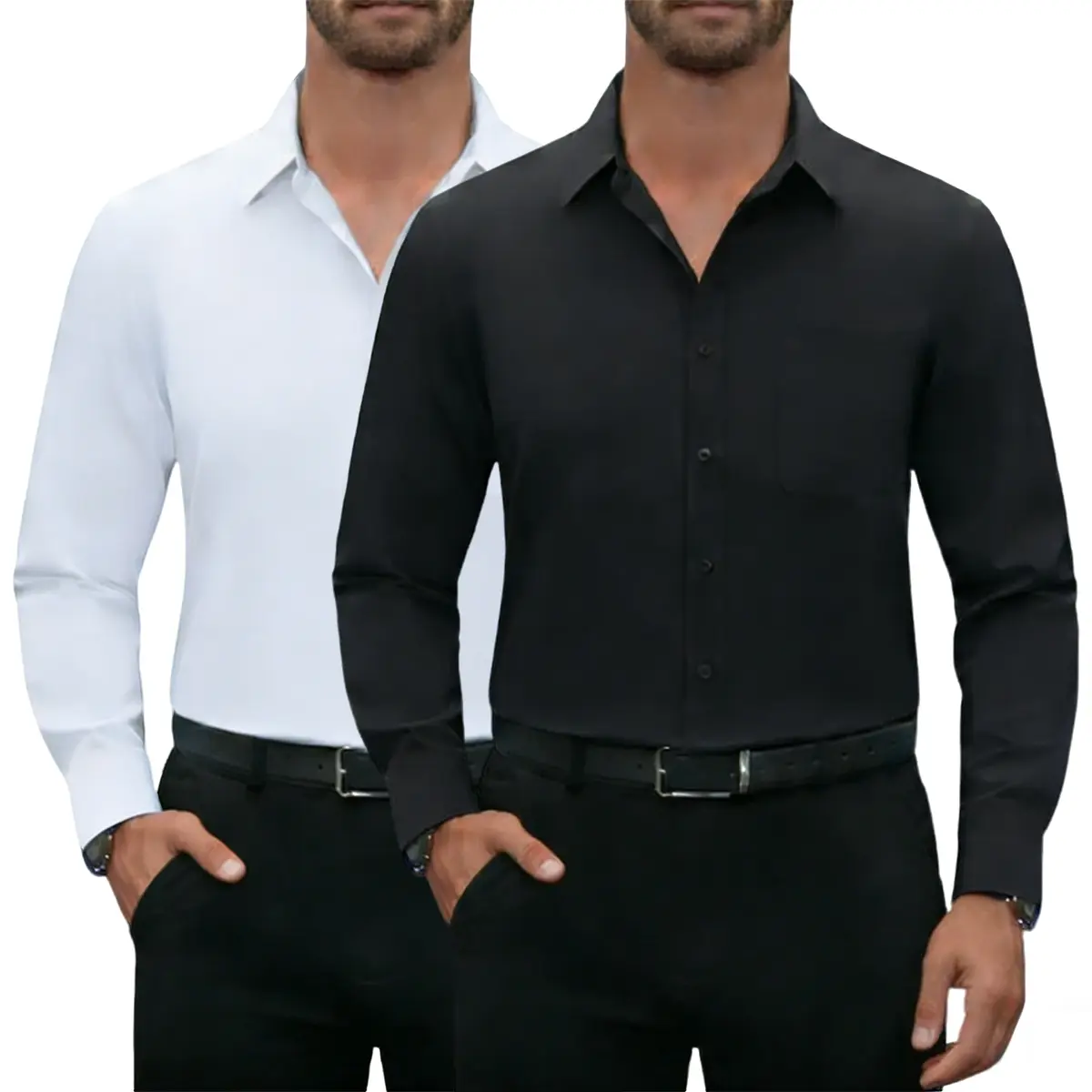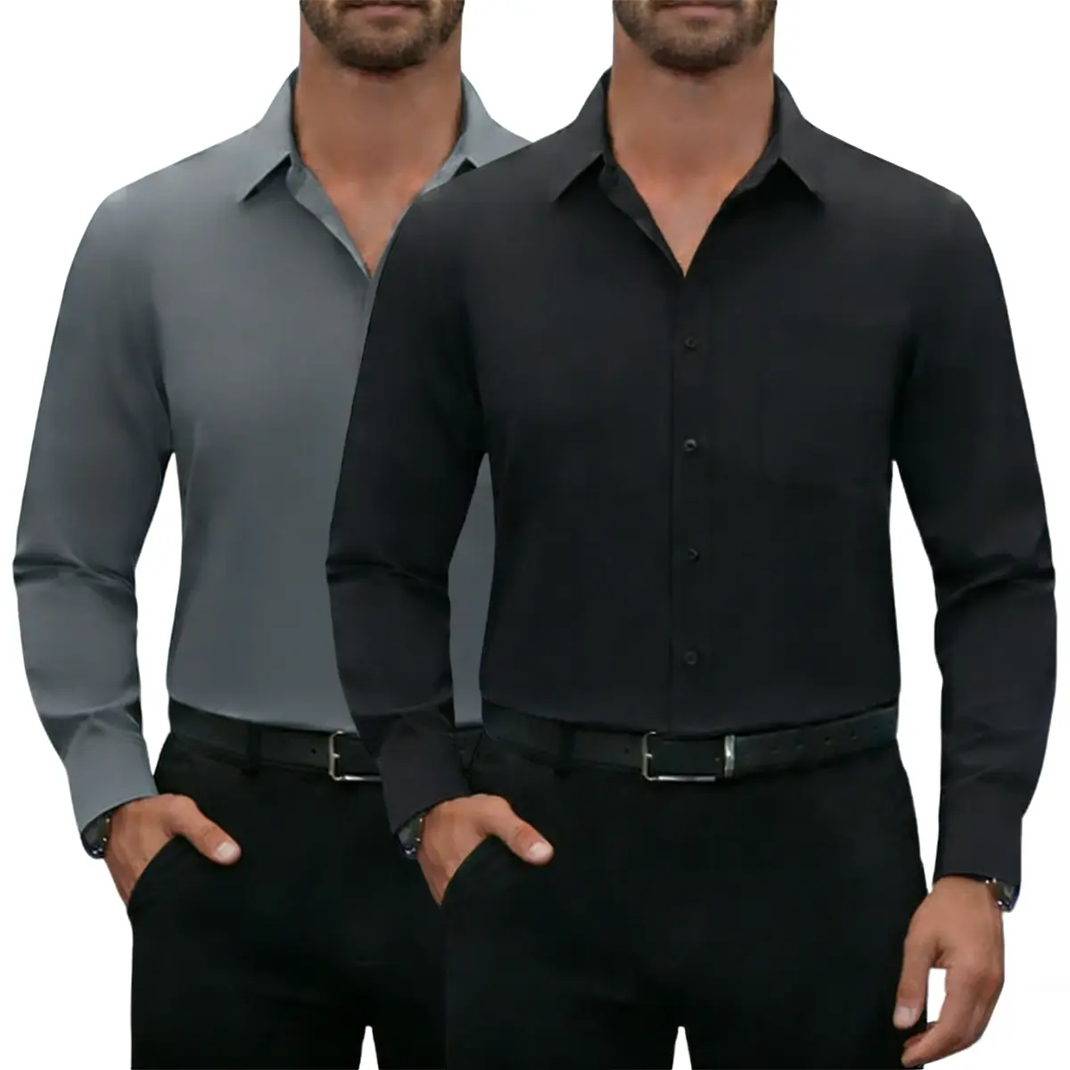 2-Pack Men's Long Sleeve Shirt Business Professional Dress Casual Shirt, Lightweight Polyester Fabric, Casual Dress Compatible, Versatile Style, Exquisite Style, Smooth Texture