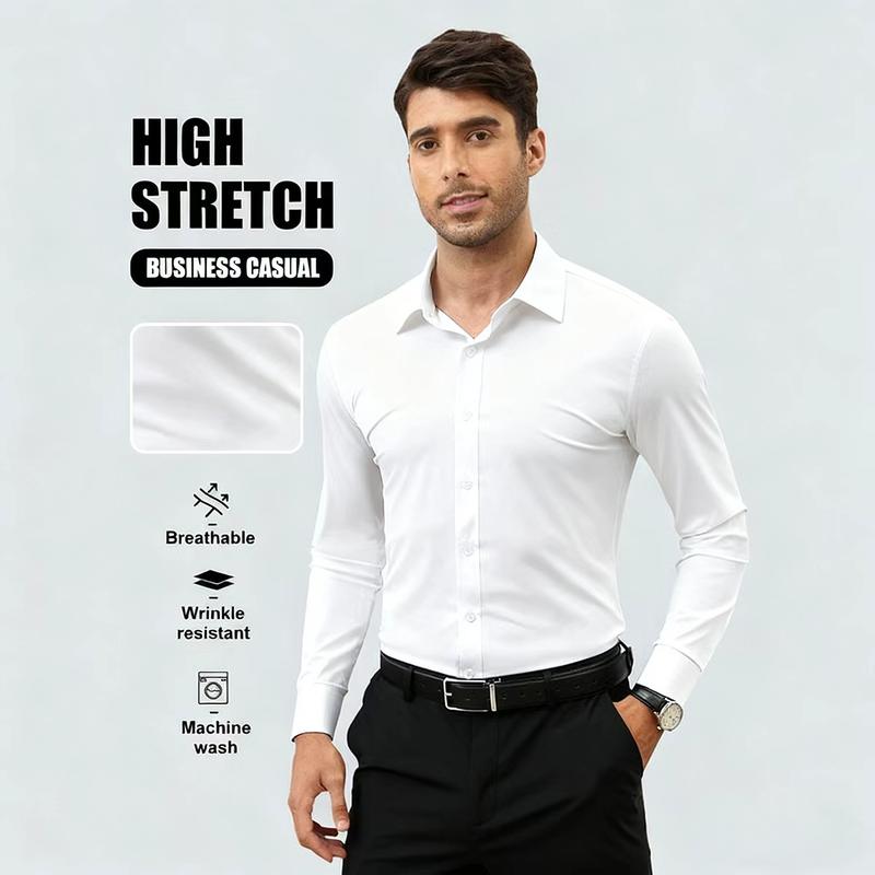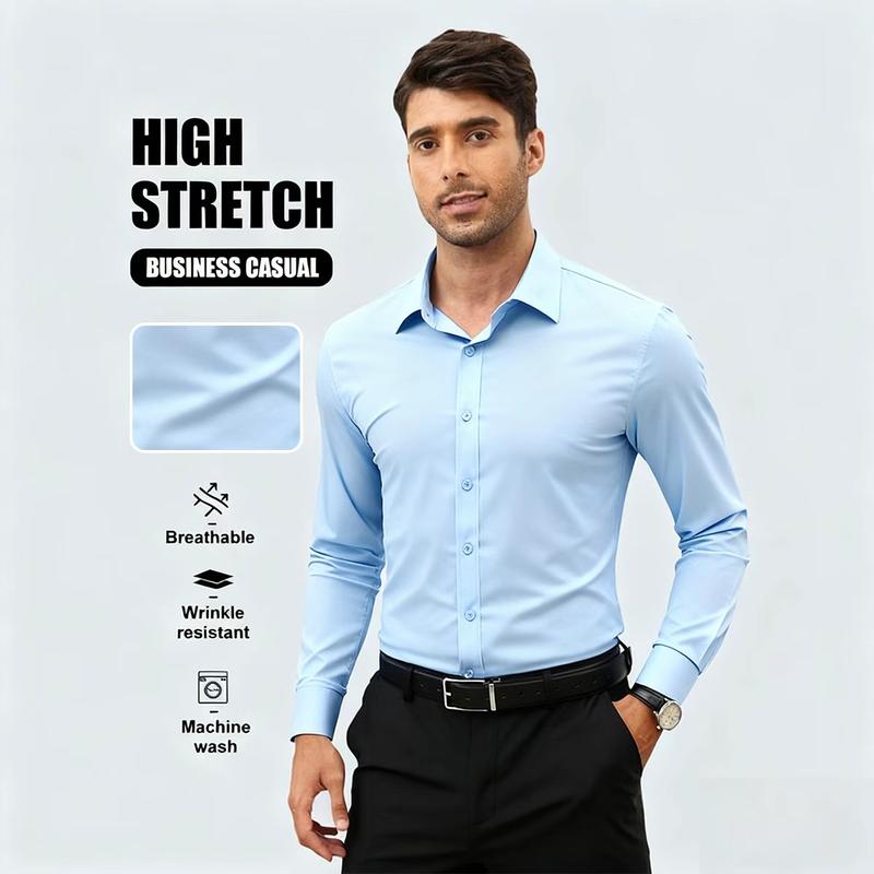 5. Men's Long Sleeve Shirt Slim Fit Solid Color Turn Down Collar Cardigan Business Casual