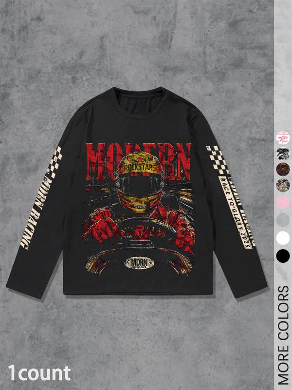 5. Men's Letter & Number Print Long Sleeve Tee, Regular Fit Casual Street T-shirt for Daily Wear, Men's Top for All Seasons
