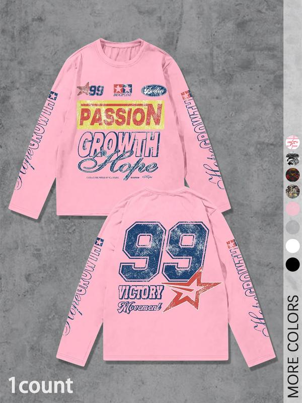 Men's Letter & Number Print Long Sleeve Tee, Regular Fit Casual Street T-shirt for Daily Wear, Men's Top for All Seasons