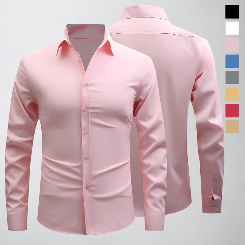 5. Men's long-sleeved dress shirt, modern slim-fit version, wrinkle-proof casual business button-down shirt, suitable for work commuting lining, basic style, men's top