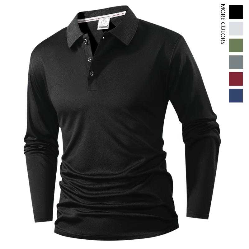 5. New men's long-sleeved polo shirt with a peaked collar in large size for golf. Plain knit fabric, moisture-wicking and sweat-absorbent. Exquisite workmanship. Suitable for casual wear in spring and autumn, as well as business casual occasions.