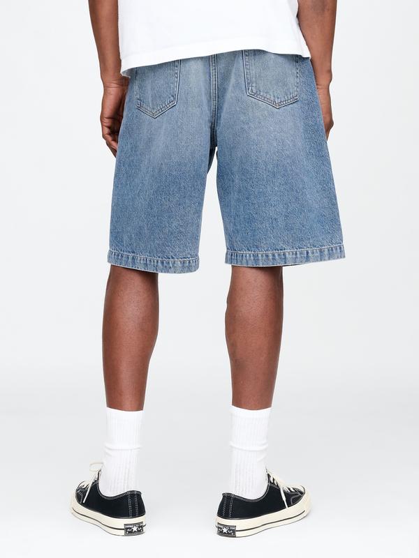 Our Mid Rise denim short has a 12.75″ (32 cm) rise. Sits below the waist with a longer rise. Relaxed through the hip & thigh. Loose, straight leg. Models are 6′1″–6′2″ (185 cm–188 cm) with a 31″ (79 cm) waist & 32–33″ (81 cm–84 cm) inseam & are wearing Gap size M.