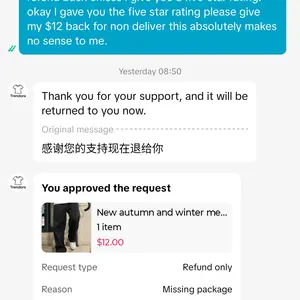 delivery service is not FedEx or UPS, they did not deliver my package. I informed the The seller right away, seller would not refund my $12 and demanded that I give them a 5-star rating before they gave me back my $12. Tiktok customer service had to step in after the seller demanded 5 Star rating