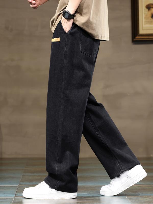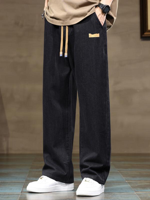 Men's Loose-Fit Relaxed Boot Cut Elastic Waist Denim Jeans, Casual Style All-Season Pants, Moderate Fabric Thickening, Comfortable & Versatile Wear Pants