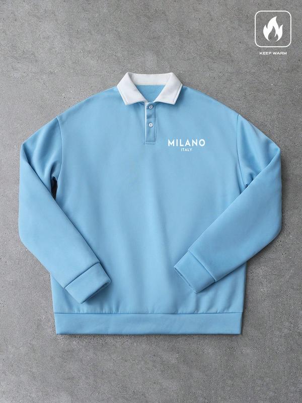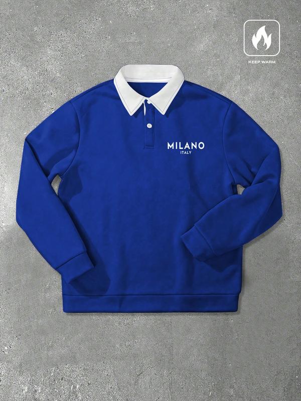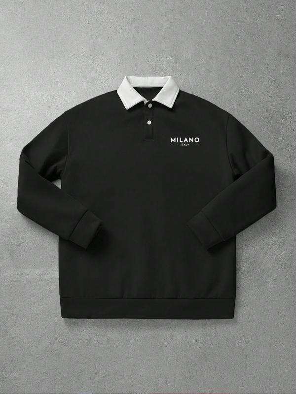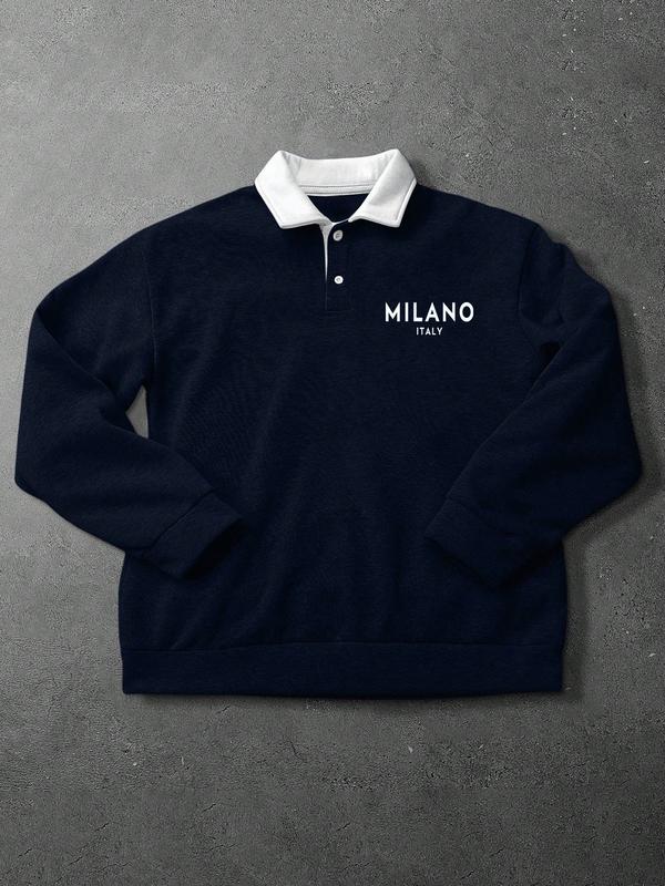 5. Men's Loose Fit Polo Collar Sweatshirt, Milano Print Long Sleeve Vacation Pullover, Perfect Gift for Friends Husband Boyfriend