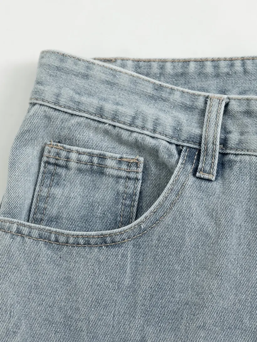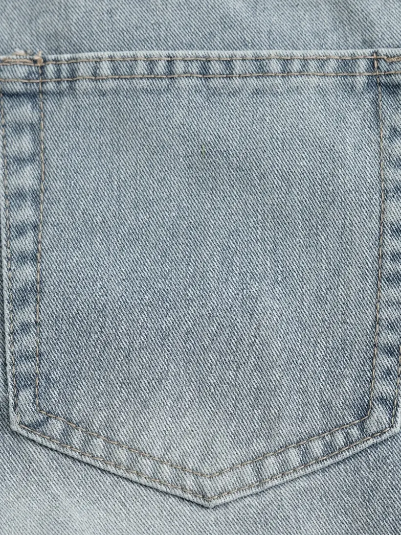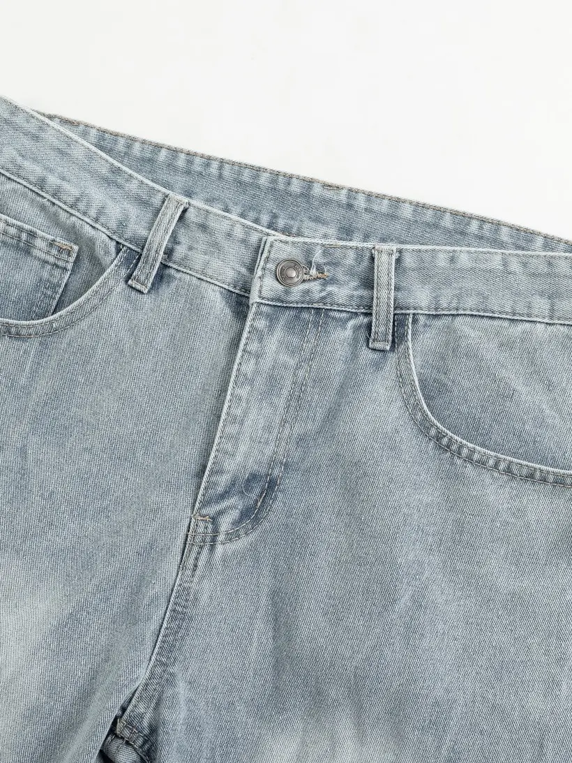 ·Material: Washed denim, providing a casual and relaxed look.