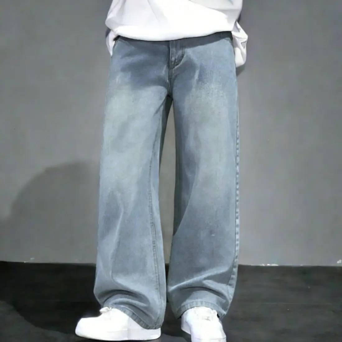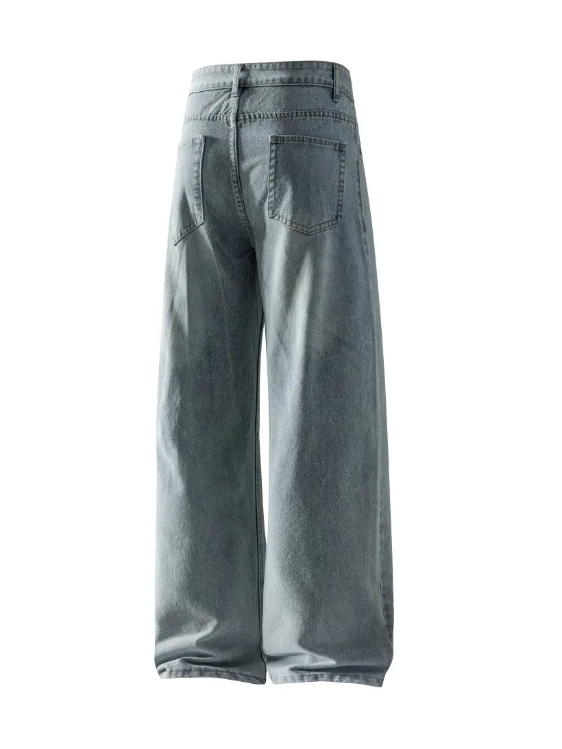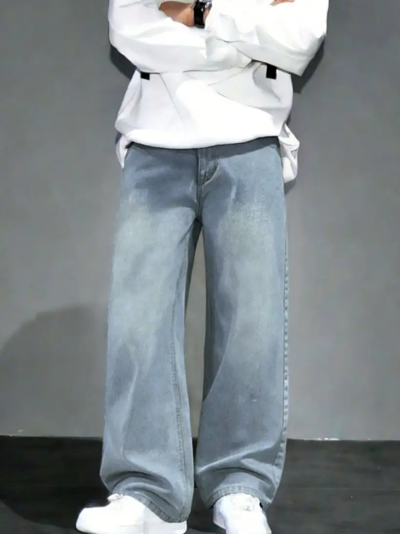 ·Title: 1pc Loose Fit Washed Denim Casual Loose Pants, Korean Style For Men