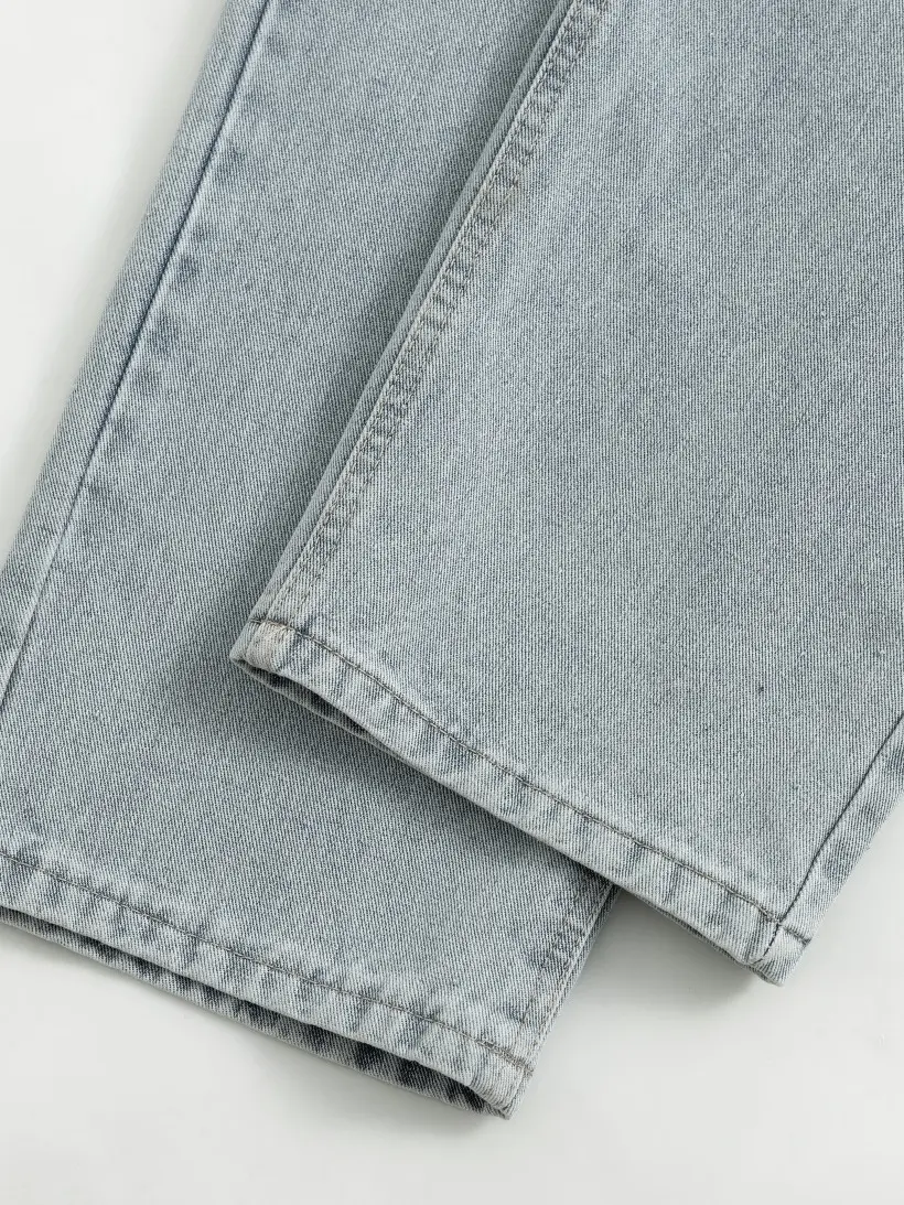 ·The image shows a pair of loose fit washed denim pants.