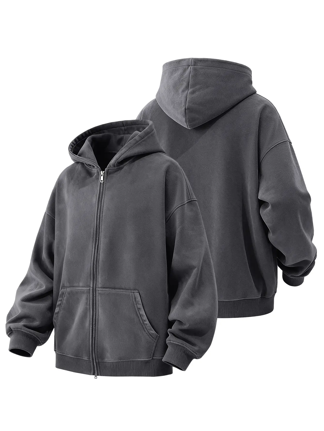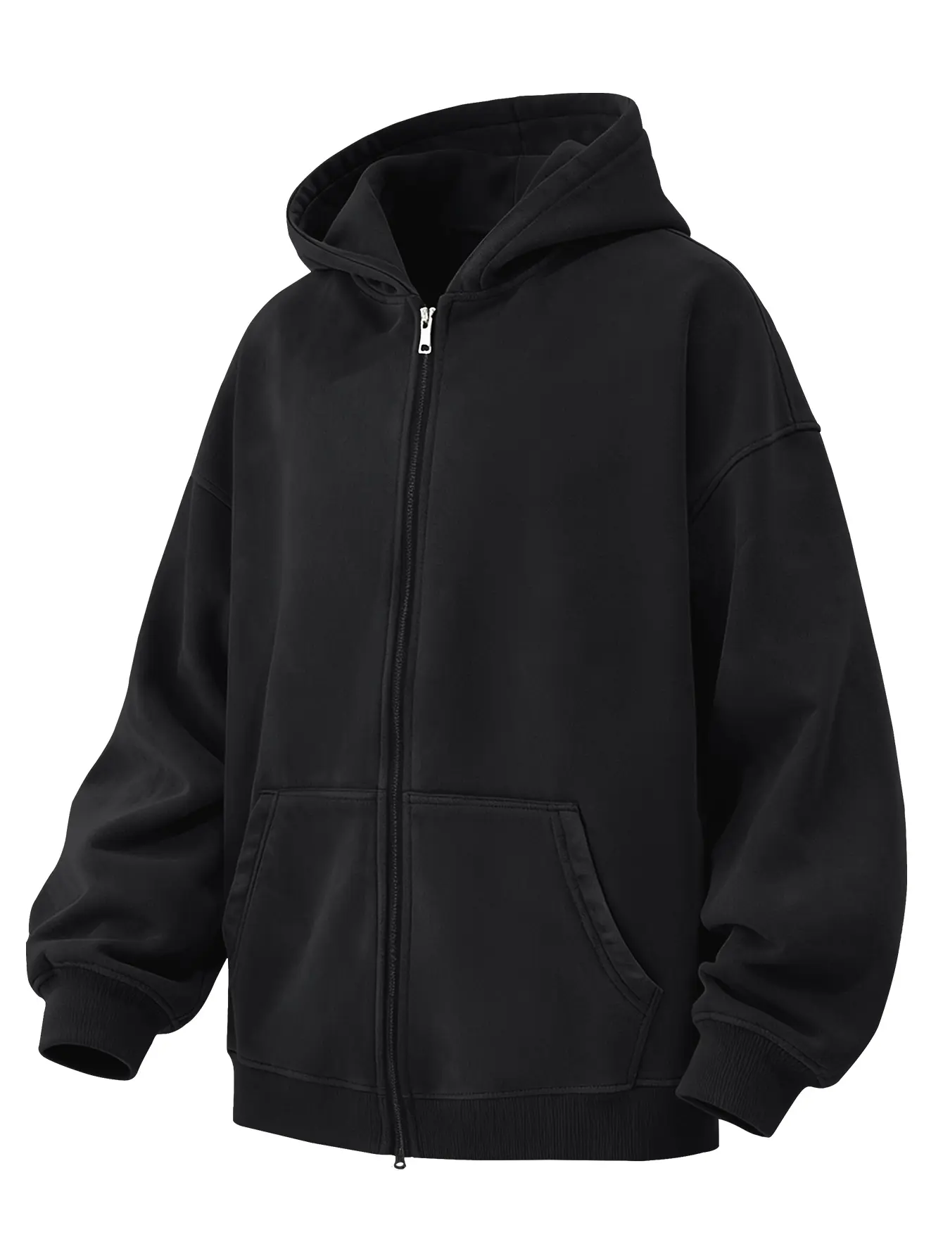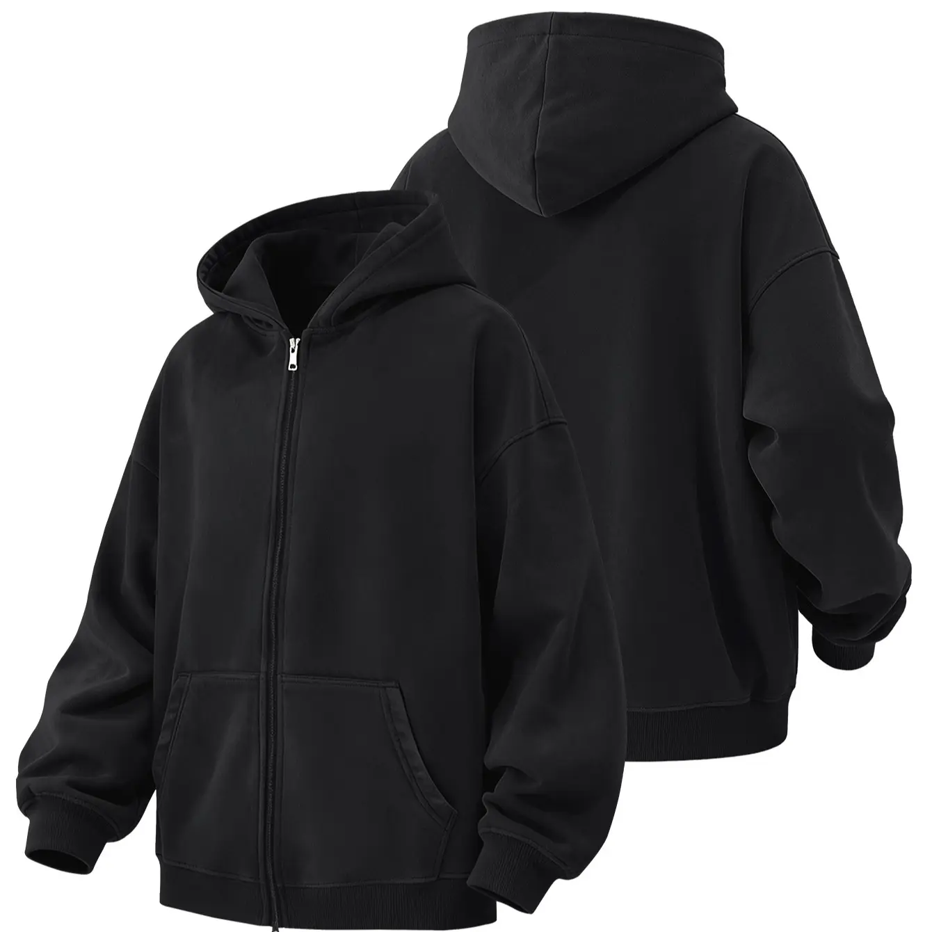 CCCMAI Men's Loose Fit Casual Windproof Zip-Up Hooded Jacket Sweatshirt in Polyester for Daily Commutes, Autumn Winter Outdoor Sports and Travel, Menswear Long Sleeve Coats Plain Tops
