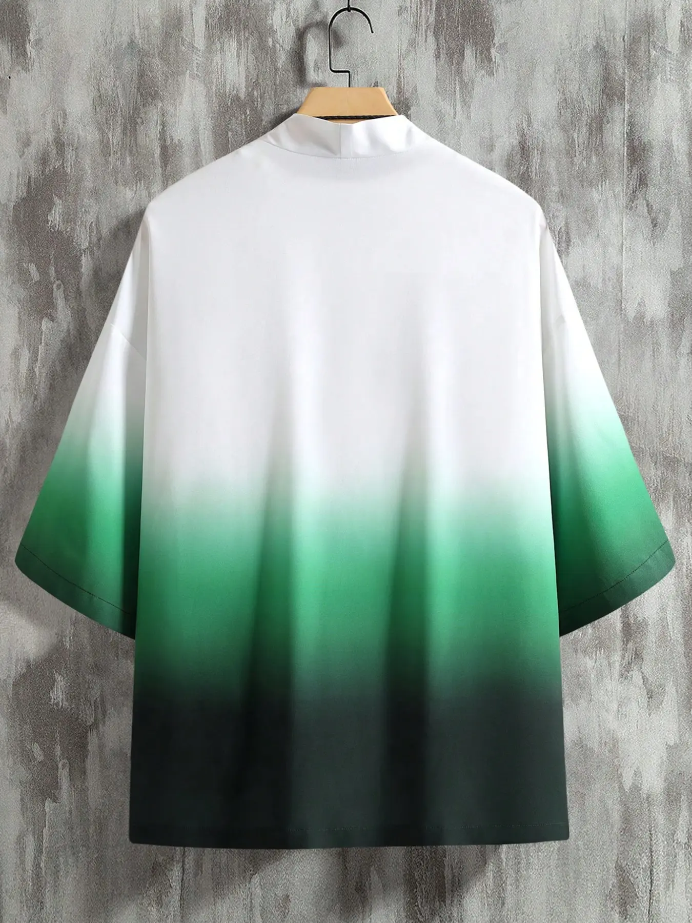 Men's Loose Ombre Kimono with Japanese Letter Graphic, Casual Style, Moderate Fabric, Perfect Gift for Boyfriend, Summer Wear #animeshirt #blouse #kawaiifashion #longsleeves #menshirtsonline #acidwashhoodie #tshirtdesign #menshirts #wrapshirt #menscasual
