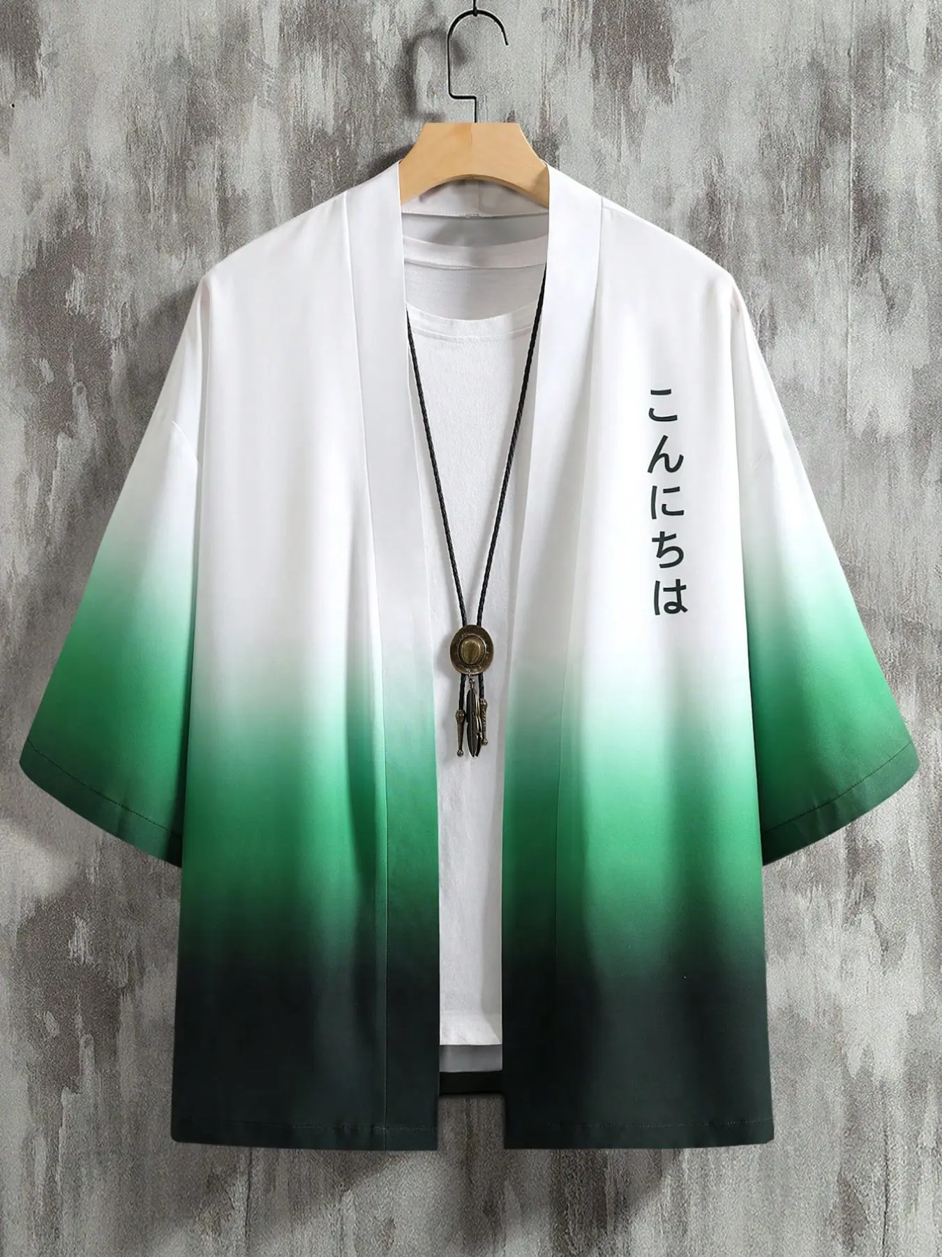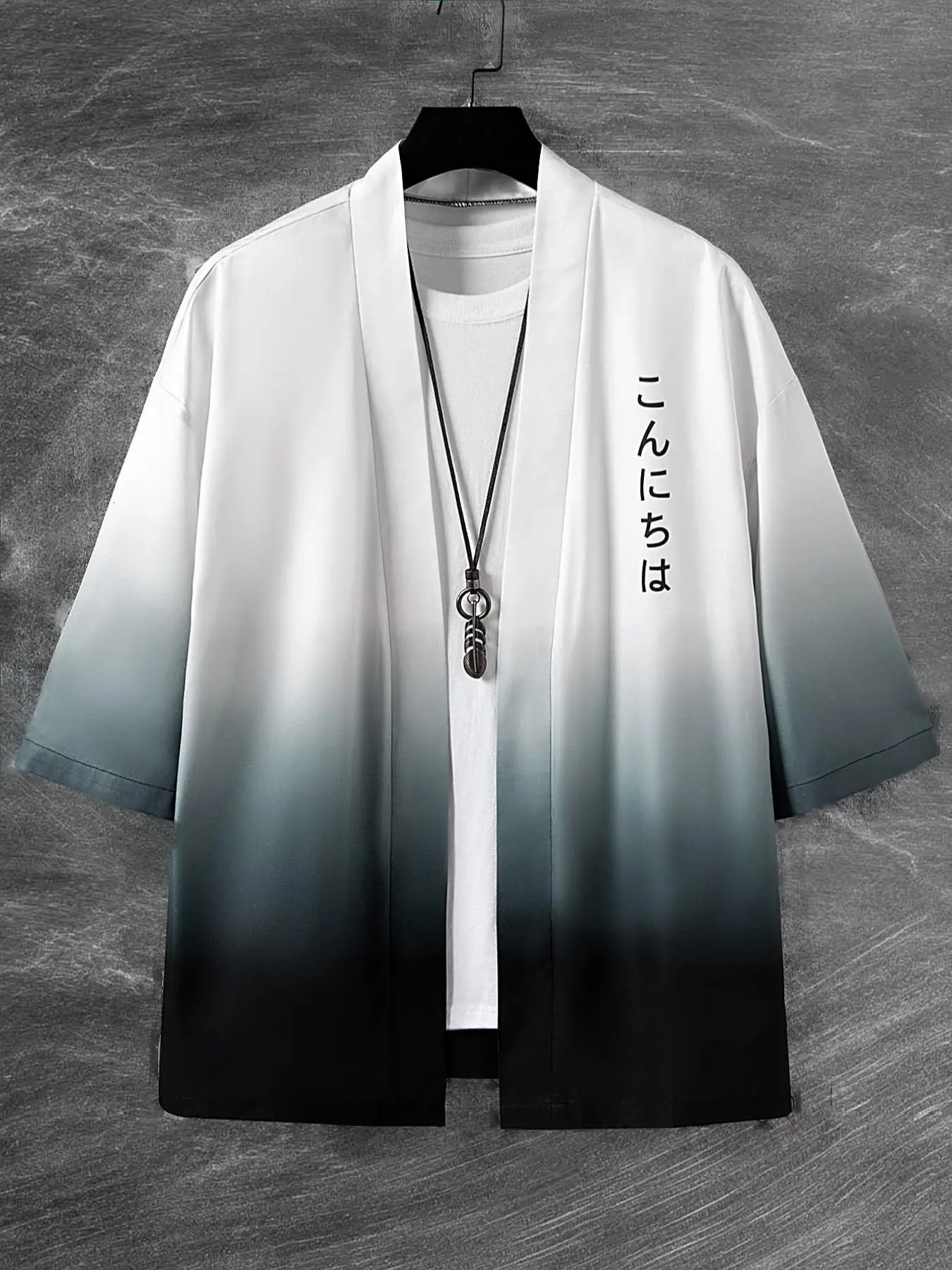 Men's Loose Ombre Kimono with Japanese Letter Graphic, Casual Style, Moderate Fabric, Perfect Gift for Boyfriend, Summer Wear #menshoodiejacket #onepieceactivewear #blousesfashion #jeanhoodie #menshirtsonline #mensdenimstyle #allseasonloungewear #camoboyclothes #narutostreetwear #winterblouses