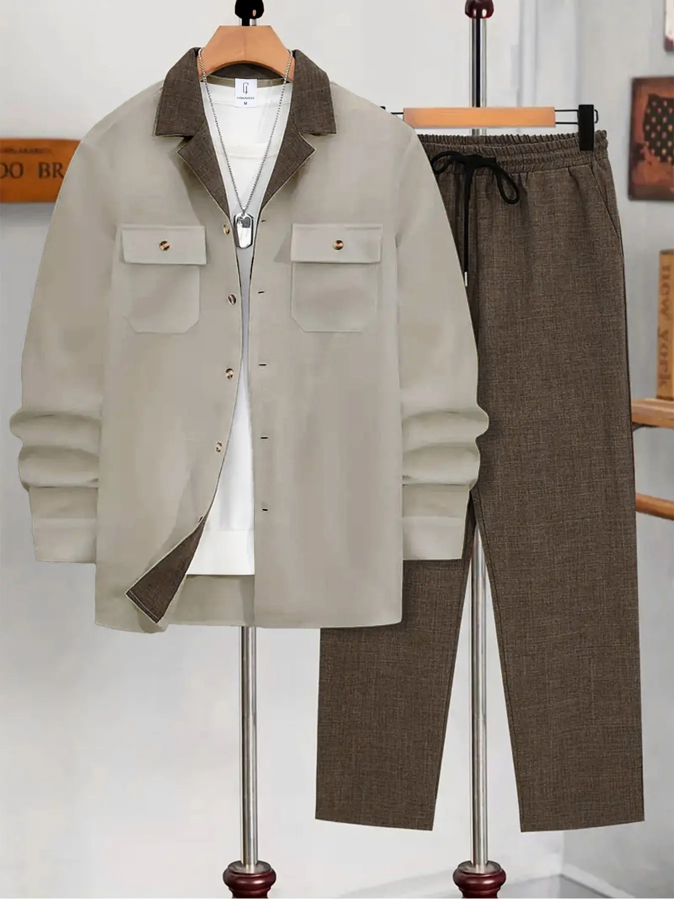 Men's 2 Piece Lounger Set, Button-Up Long Sleeve & Matching Pants, Ideal for Outdoor, Beach Vacations, Travel, Casual Fashion #womenspajamas #sweaterset #tracksuits #comfortablepajamas #womenssweatshirtset #mensjoggersets #womensloungewear #menssuits #casualouterwear #twopiecesetmen