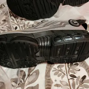 VERY SLIPPERY!! Beware, it works decent tho. The steel toe if u hit something u will feel it.