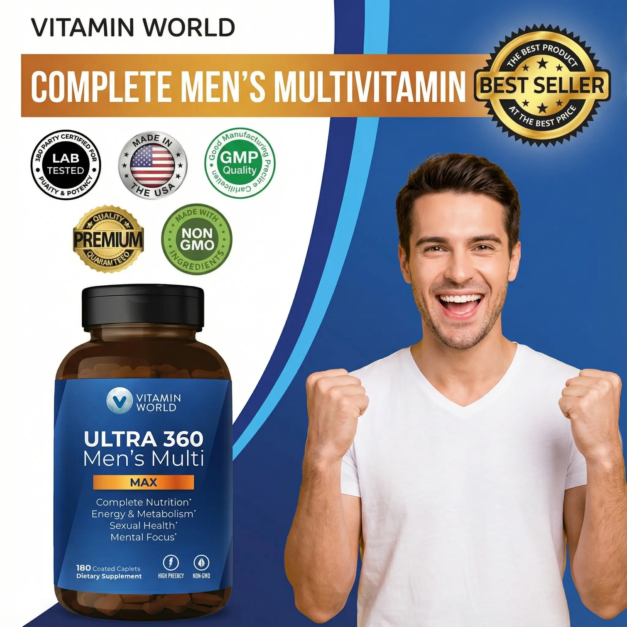 Discover the ULTRA 360 Men's Max Multivitamin, designed to support your daily nutritional needs and enhance your athletic performance, stamina, and overall well-being. This supplement is specifically formulated to meet the key nutrients for men, ensuring you get the power you need to achieve your goals.