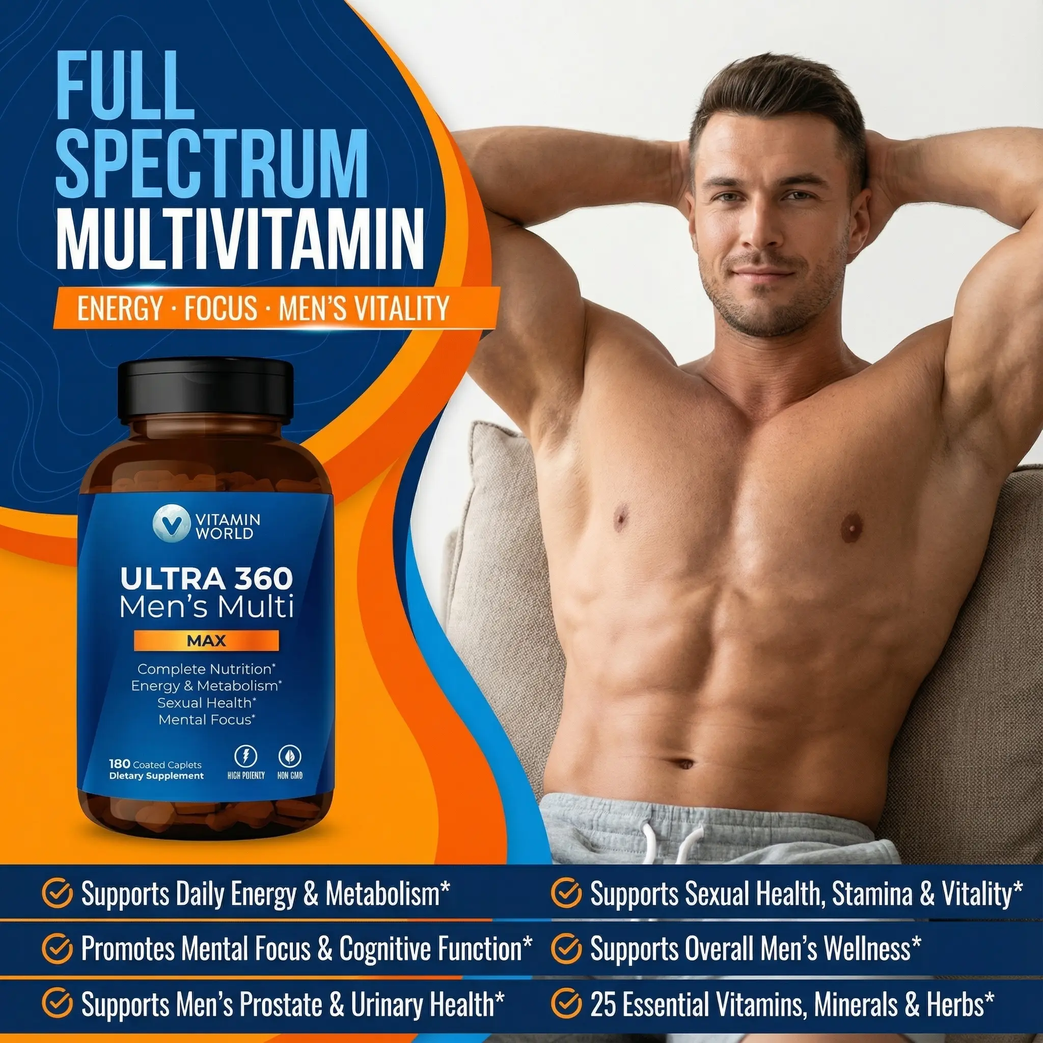 VITAMIN WORLD ULTRA 360 Men's Max Multivitamin, Max for Men Daily Multivitamin - Non-GMO, Gluten Free - Supplement, Healthcare Fitness, Edible DietaryVITAMIN WORLD ULTRA 360 Men's Max Multivitamin, Max for Men Daily Multivitamin - Non-GMO, Gluten Free - Supplement, Healthcare Fitness, Edible DietaryVITAMIN WORLD ULTRA 360 Men's Max Multivitamin, Max for Men Daily Multivitamin - Non-GMO, Gluten Free - Supplement, Healthcare Fitness, Edible DietaryVITAMIN WORLD ULTRA 360 Men's Max Multivitamin, Max for Men Daily Multivitamin - Non-GMO, Gluten Free - Supplement, Healthcare Fitness, Edible DietaryVITAMIN WORLD ULTRA 360 Men's Max Multivitamin, Max for Men Daily Multivitamin - Non-GMO, Gluten Free - Supplement, Healthcare Fitness, Edible Dietary
