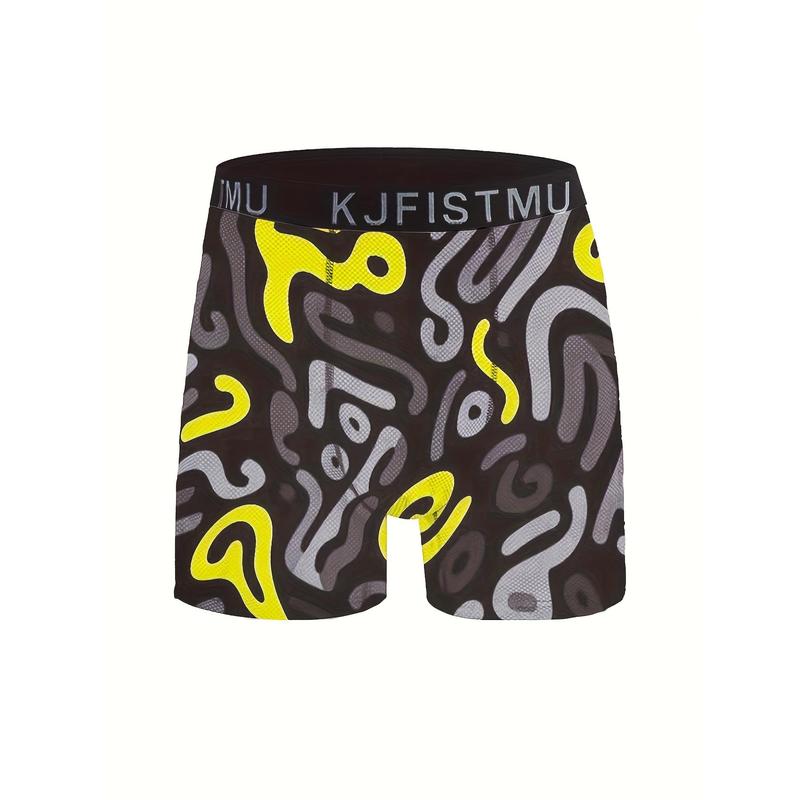 Men's mesh boxers: The breathable material draws moisture away from the body, ensuring you stay cool and dry. Key attributes: A black elastic waistband enhances flexibility and comfort. Vibrant hues: The men's underwear features a colorful geometric design, and the latest shades of breathable men's underwear will amaze you and cater to your various preferences.
