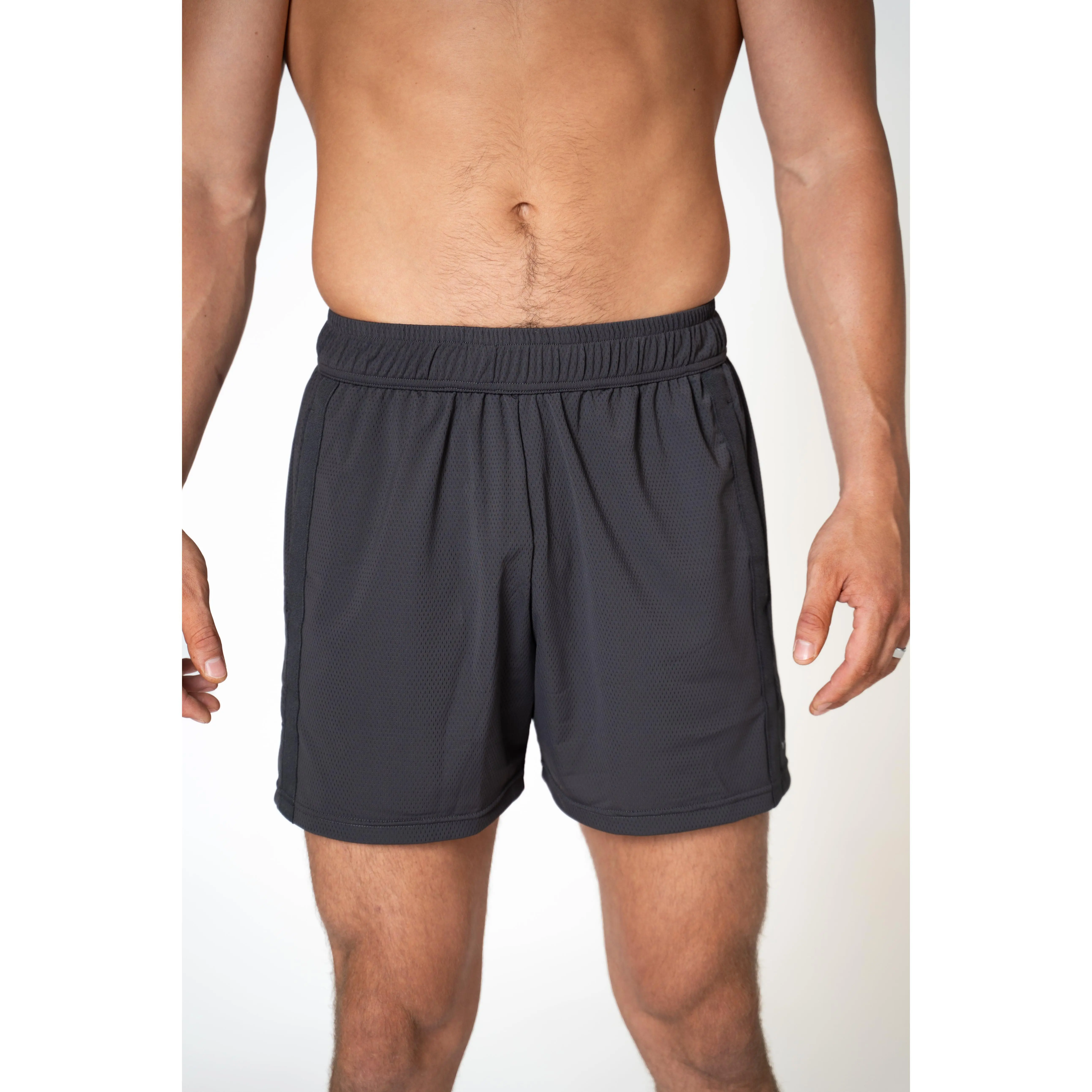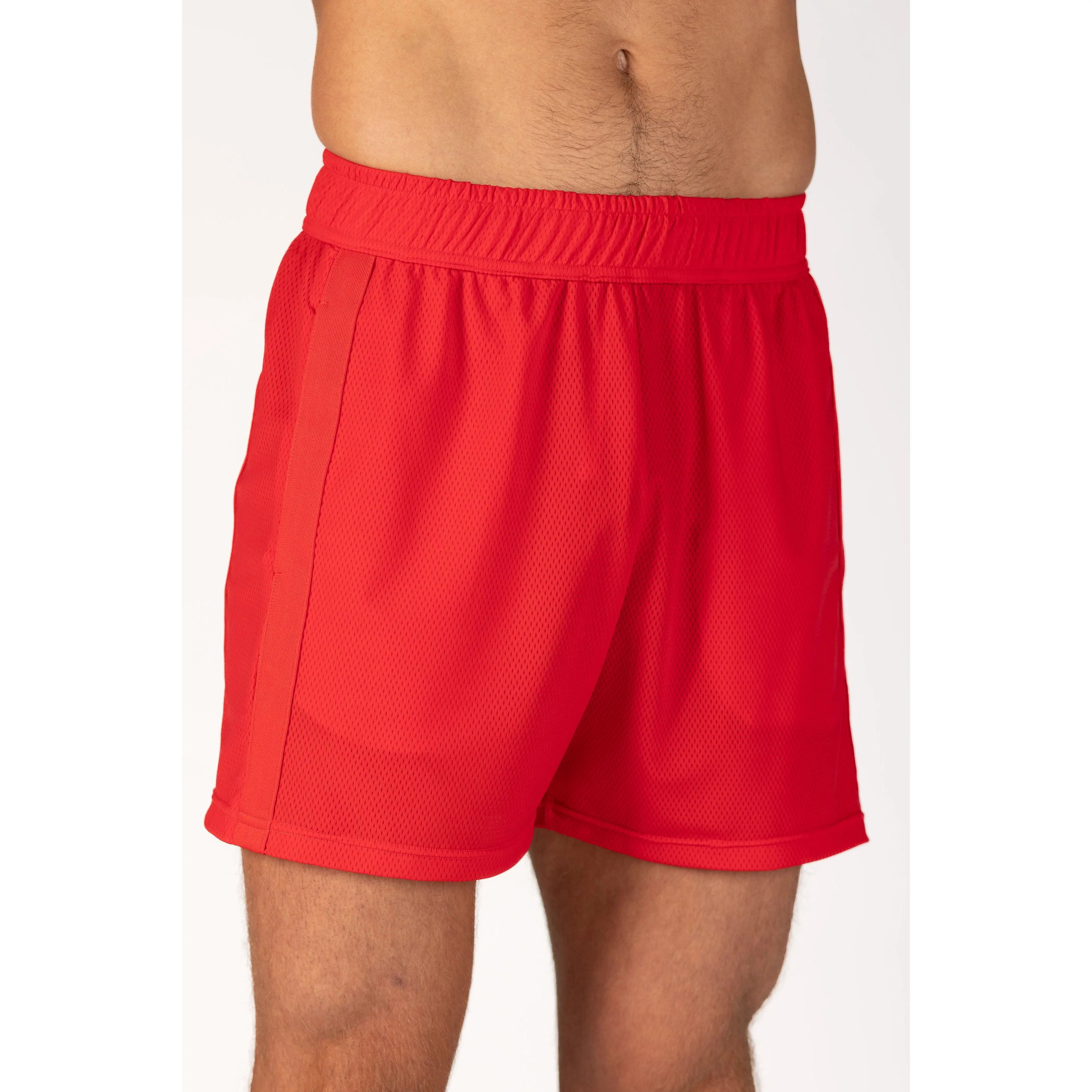Our new men's shorts come in a soft and slinky mesh fabric, with interior drawcord, side pockets and trim detailing throughout.