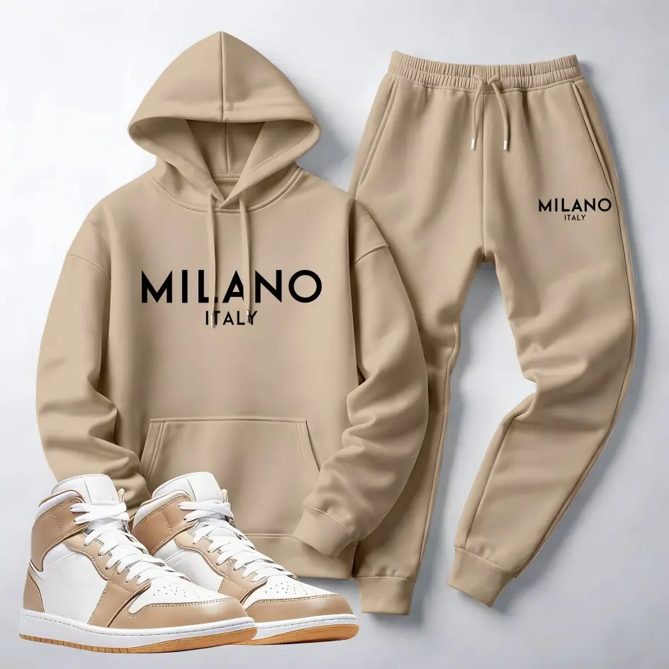 Men's Printed Hoodie & Drawstring Sweatpants Set