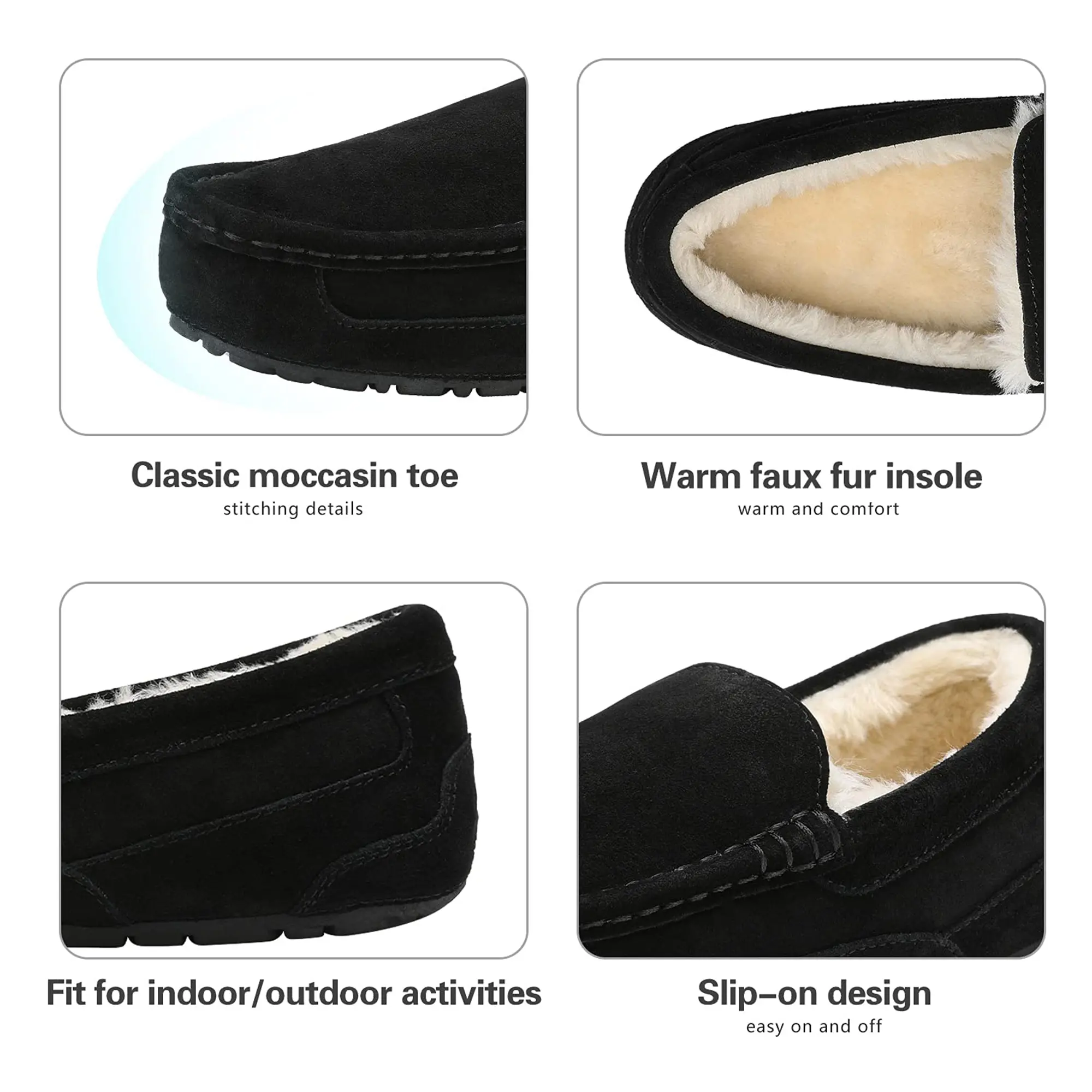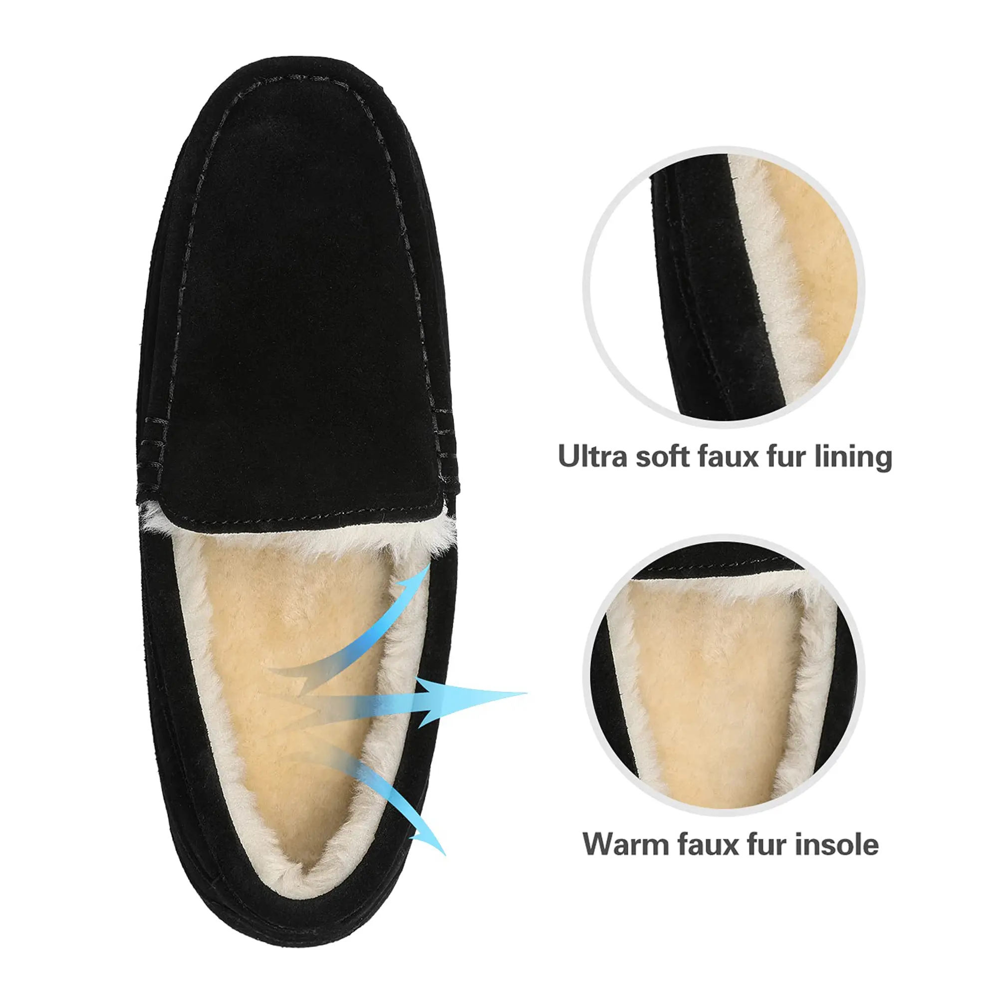 ·Flexible Outsole: The patterned TPR rubber outsole provides grip when walking. These non-slip winter loafers are ideal for indoor/outdoor use.