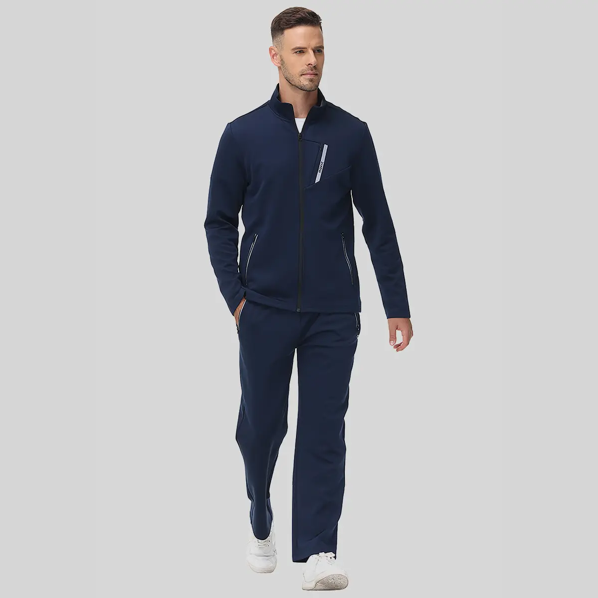 ·【Design】A:Tracksuits for men set: track jackets with 2 slant pocket that is storage your small items safely while exercising, Full zip jackets the inseam inner has the adjustable drawstring, full-zip closure, long sleeve with Stitching color ; track pants with 2-pockets, B:Solid Outfit set :Full zip jackets the Chest with the reflective zip slant 1-pocket and the reflective 2 slant pocket,track pants with the reflective zip 2-pockets,delicate waist elastic design with drawstring, easy to put on.