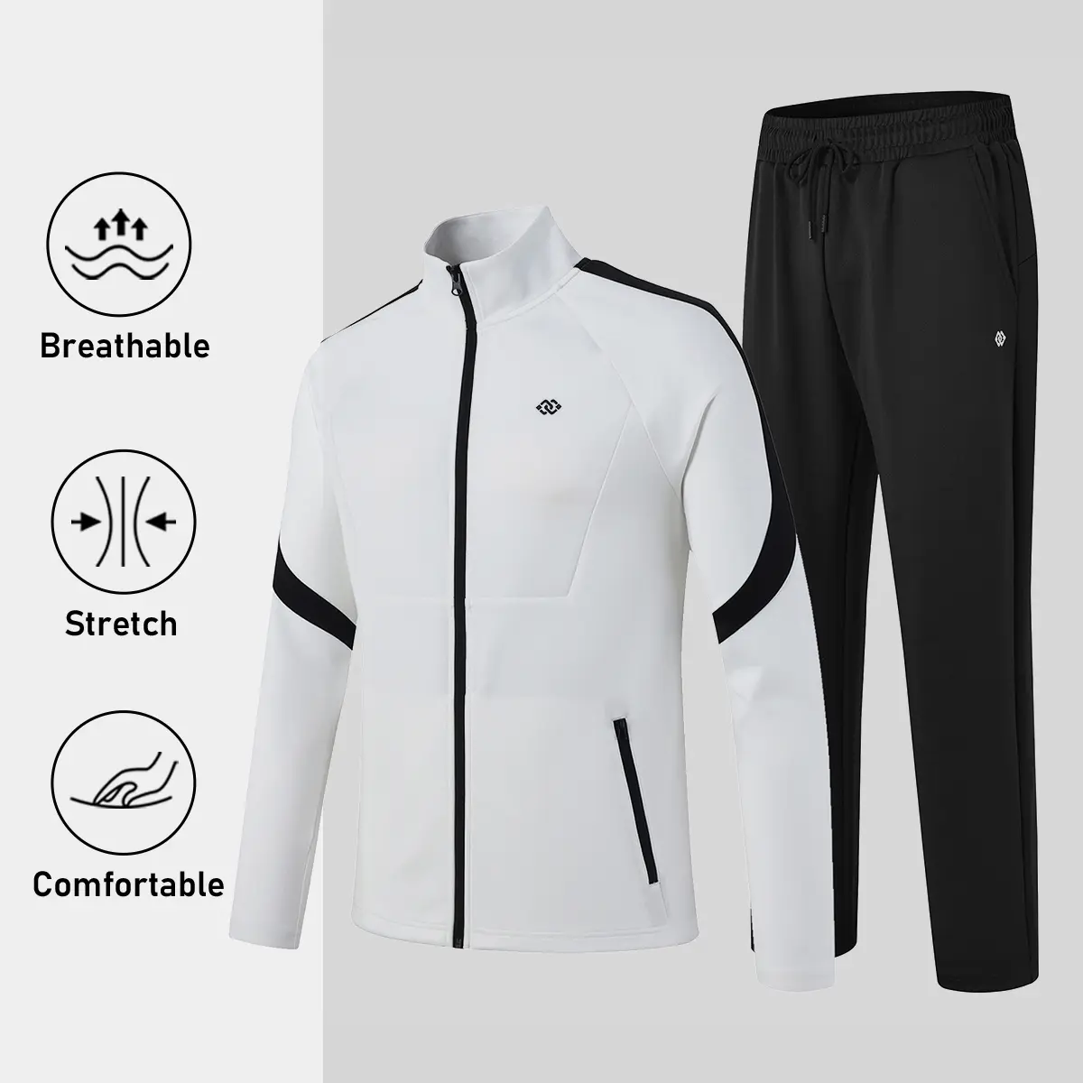 ·【Design More Detail 】:Stand-up Collar provides extra coverage and protection . Full zip jackets in warmth,Straight track Pants come with Two Zippered Pockets, Drawstring Closure to fit waist better.
