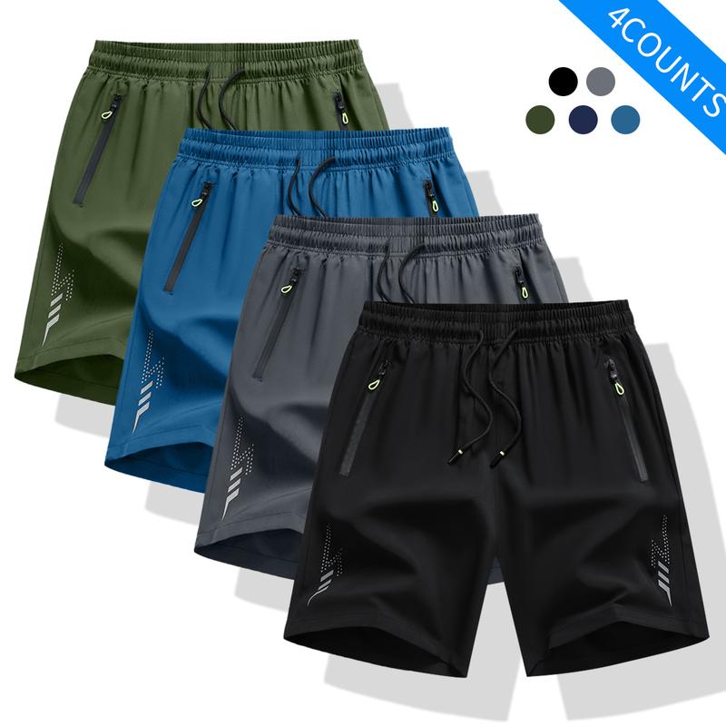 ·These 4-piece men's shorts are multi-color drawstring waist shorts. They are lightweight, breathable, and ideal for daily wear, beach, and outdoor activities. 🌞