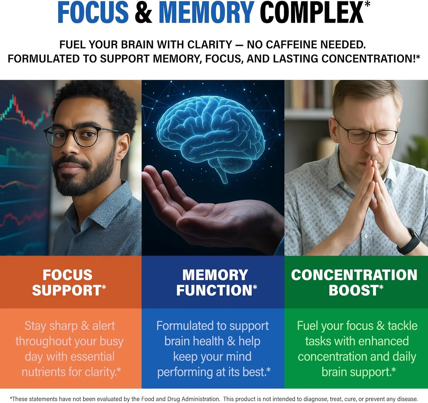 ·Focus & Memory Complex — stay sharp & focused naturally. Designed to keep your mind alert and performing at its best, this blend pairs perfectly with your lifestyle, helping you tackle your day with confidence & lasting focus.