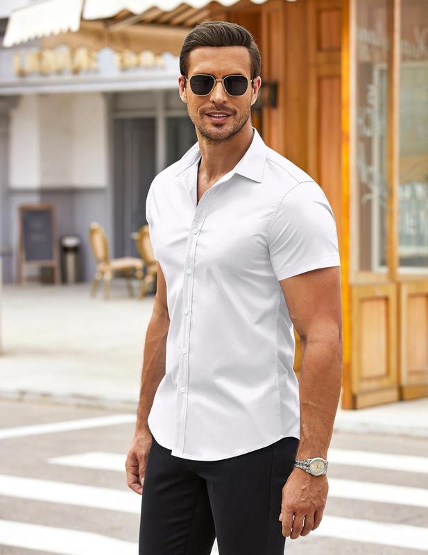·【Occasions】You can pair this short sleeve button down shirts with chinos/jeans for casual daily wear, or match the stretchable shirt with dress pants for classy sharp look. This smart shirt is essential in mens wardrobe and greats for all season, Suitable for office, business, date, night out, club, travel and casual daily wear.