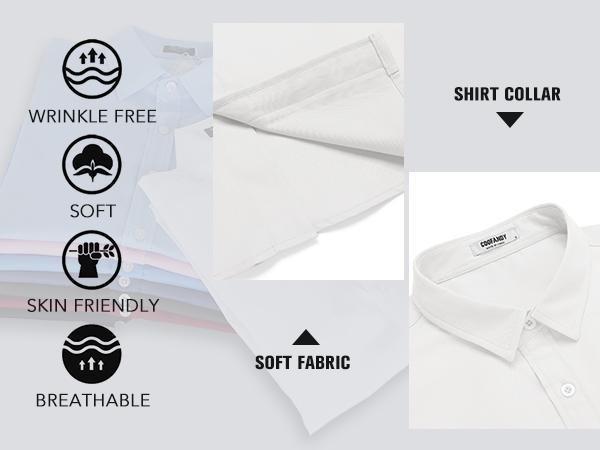 ·【Wrinkle-Free】 High quality woven fabric, lightweight and breathable, wrinkle free dress shirts with a clean look, keeps your body dry and comfortable all day.