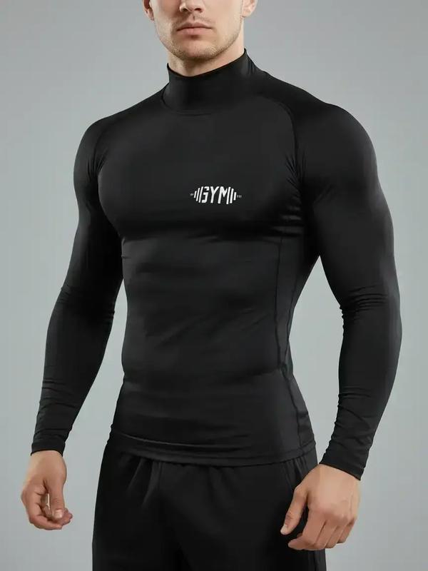 1PC Men's Muscle Fit Gym Shirt – Fitness Shirt, GYM Print, High Neck, Breathable & Stretch Fabric, Designed for Outdoor Workouts, Running, Hiking & Training