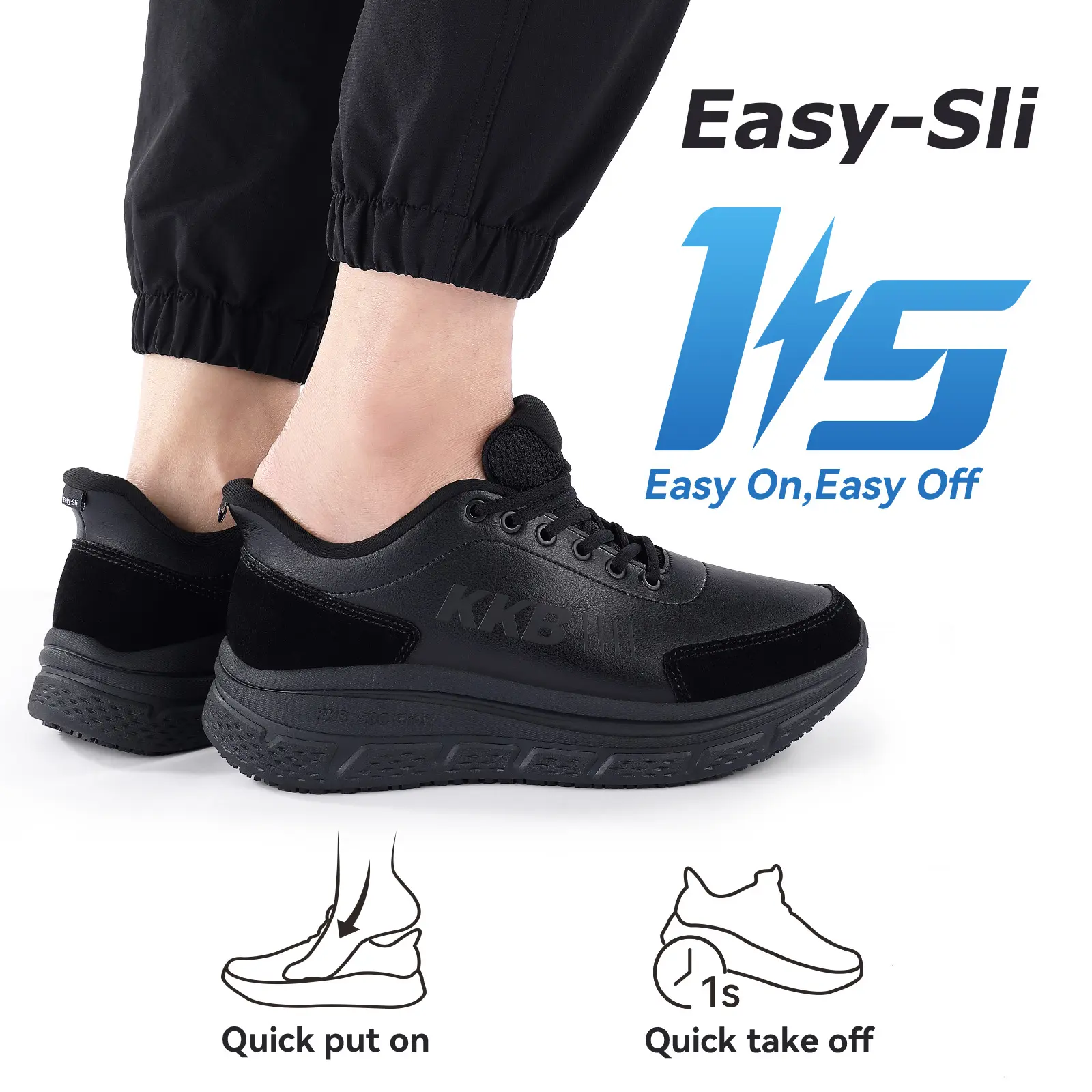 ·Non Slip & Durable: Featuring an advanced high-grip outsole design, Loafers Casual Shoes deliver exceptional non-slip , maintaining secure traction on wet, snowy, or rainy surfaces. They remain safe and reliable even under extreme conditions—45-degree incline coated with oil-stained glass. Additionally, KKB Loafers shoes premium fabrics and superior stitching techniques enhance the durability of these work shoes.