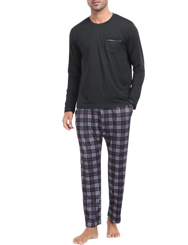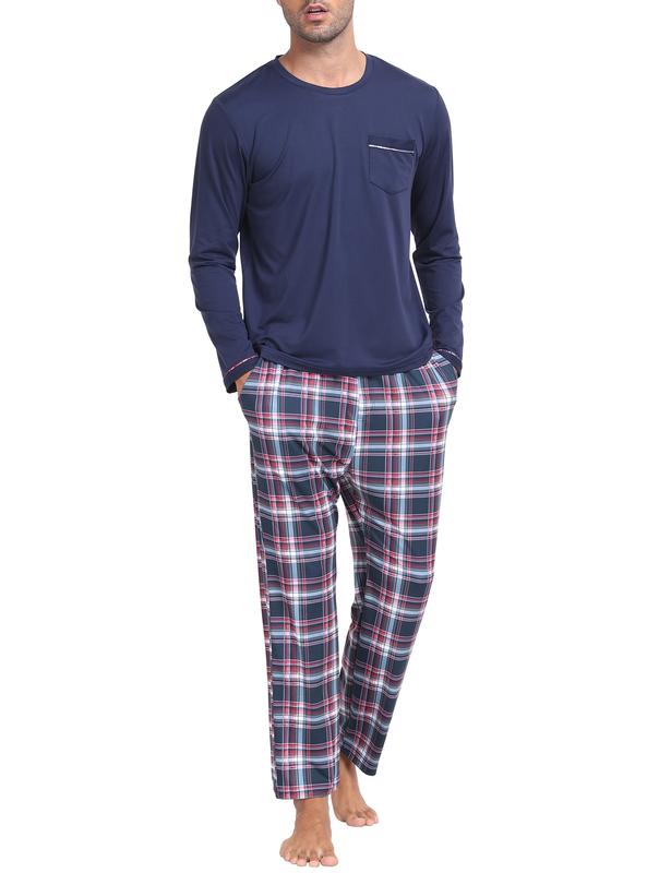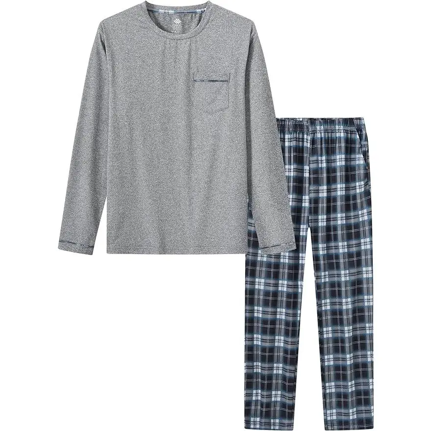 MoFiz Men's Pajamas Plaid Sets Sleepwear Long Sleeve Shirts an... @Mofiz Comfort