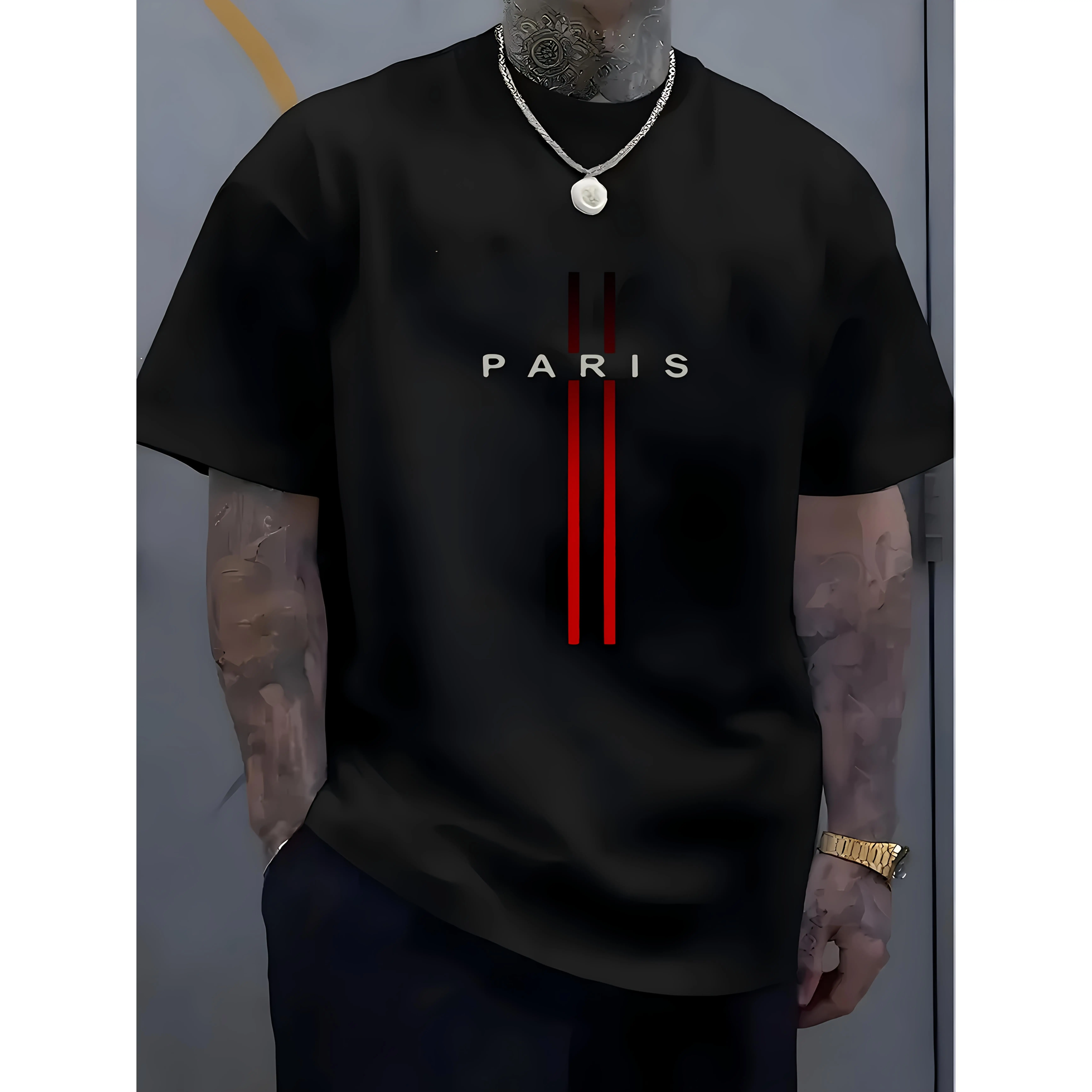5. Men's Paris Graphic Print Cotton T-Shirt - Soft Round Neck, Slightly Stretchy Street Style, Breathable All-Season Casual Tee, Machine Washable Regular Fit