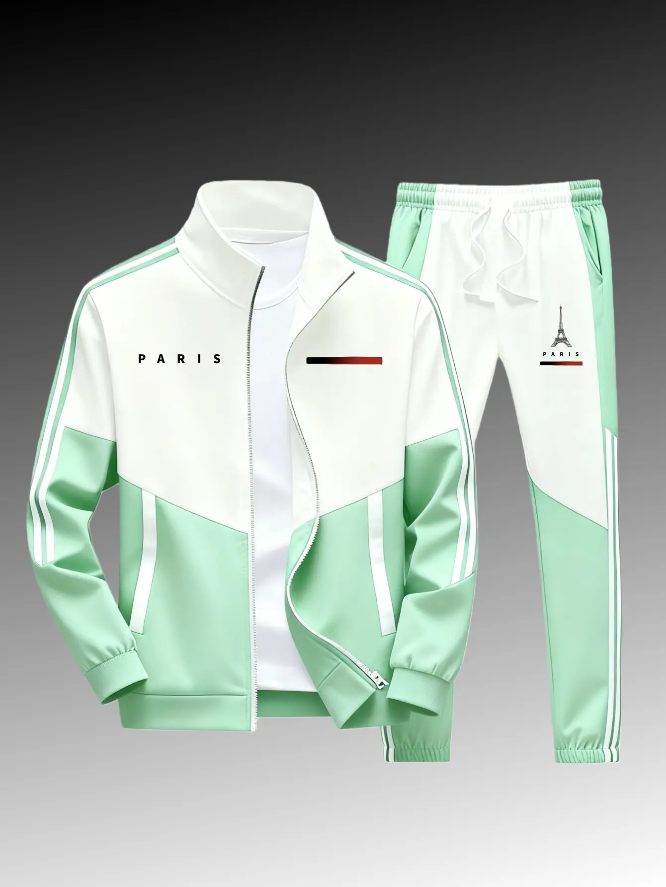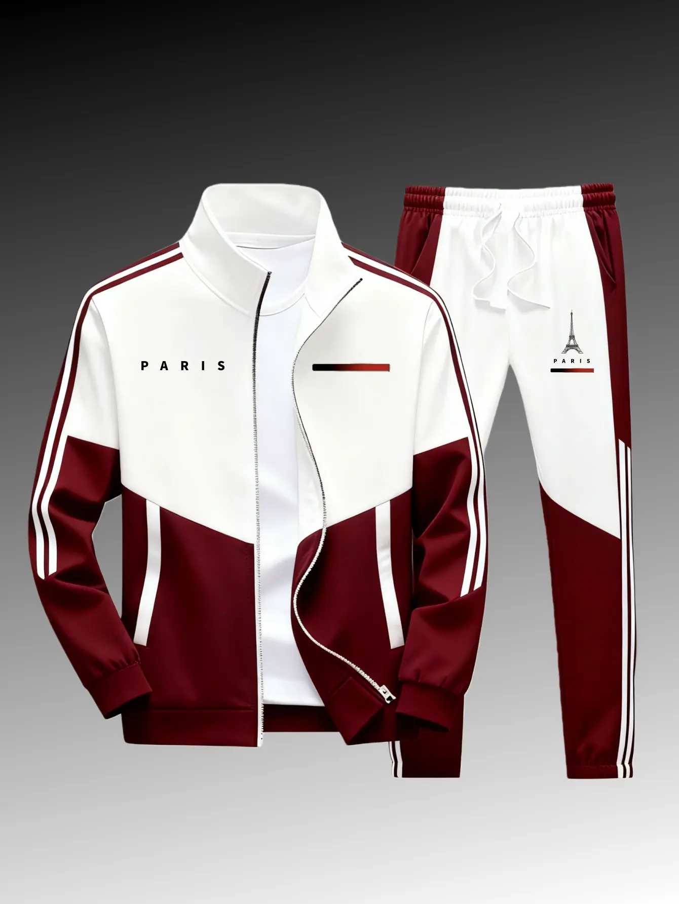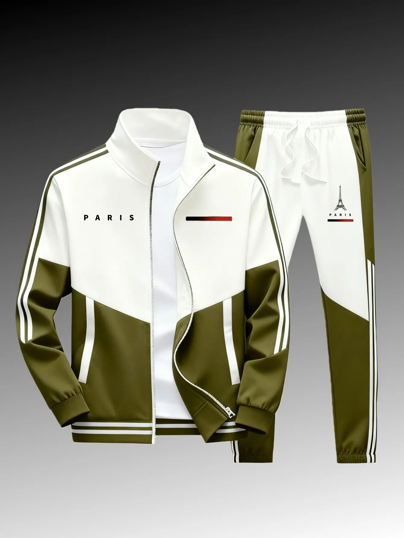 Men's Paris Eiffel Tower Track Suit 2 Piece Casual Athletic Jogger Set | Lightweight Zip Up Jacket & Sweatpants