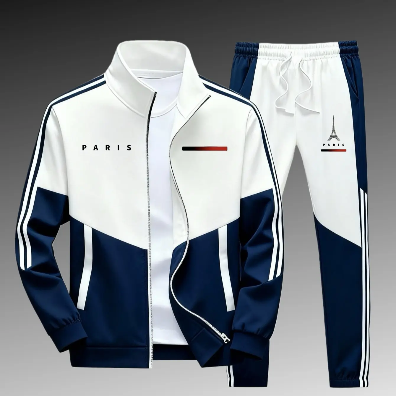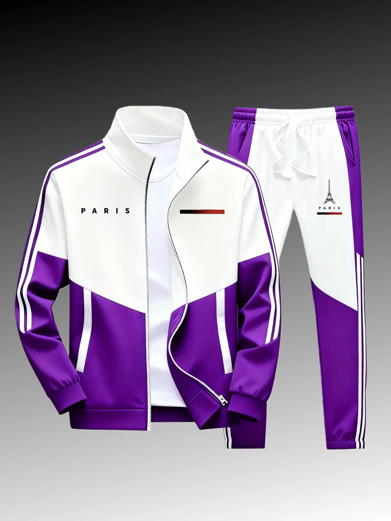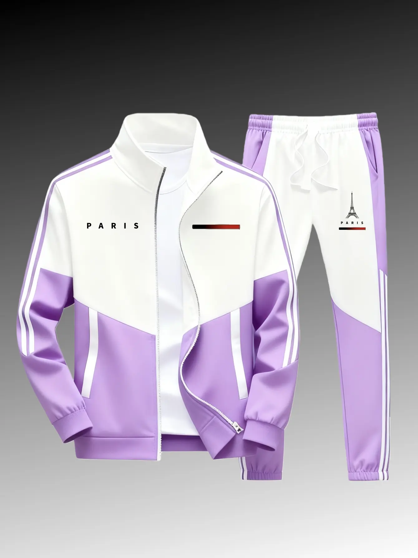 Men's Paris Eiffel Tower Track Suit 2 Piece Casual Athletic Jogger Set | Lightweight Zip Up Jacket & Sweatpants