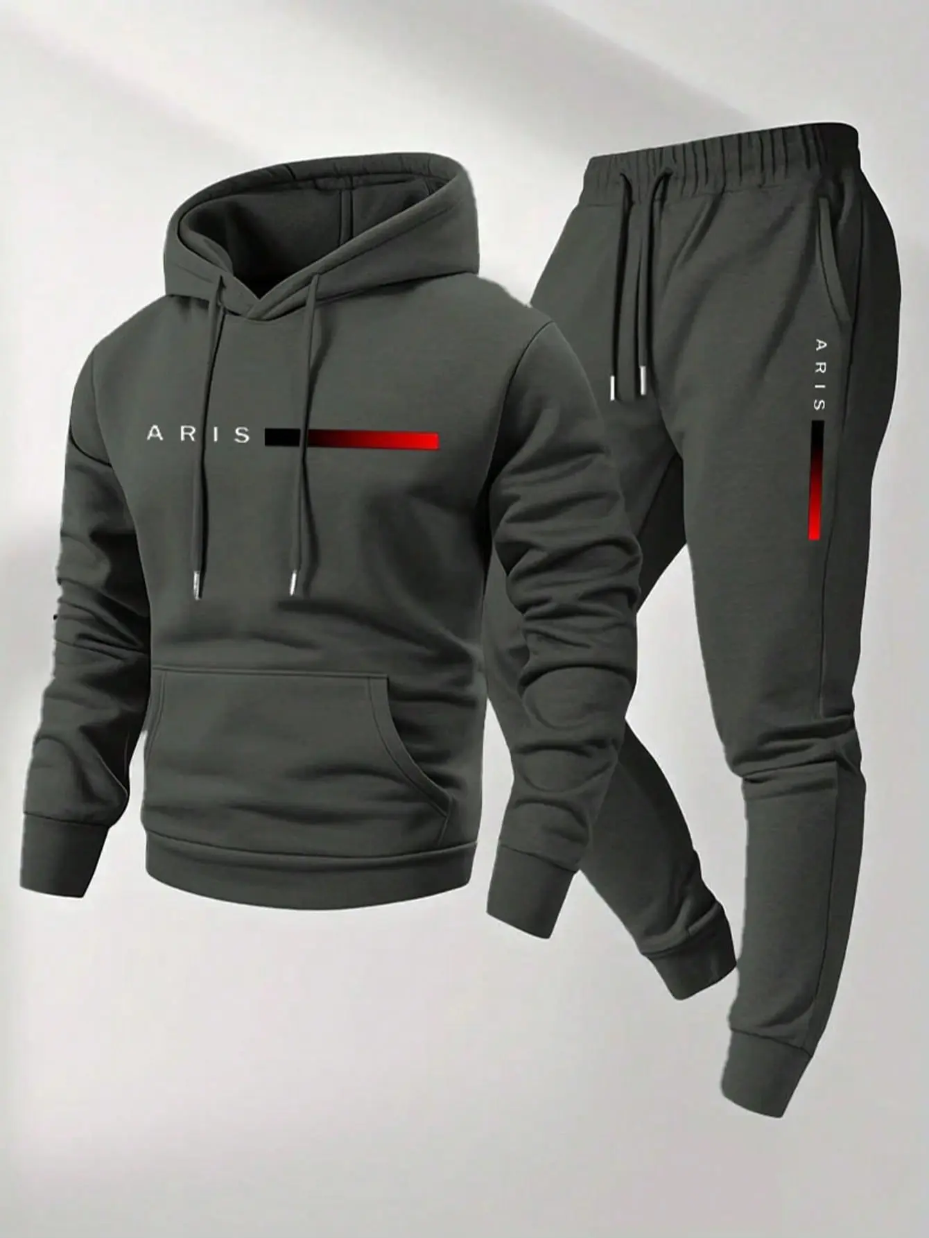 Men's Paris Letter Printed Hoodie and Drawstring Sweatpants Set