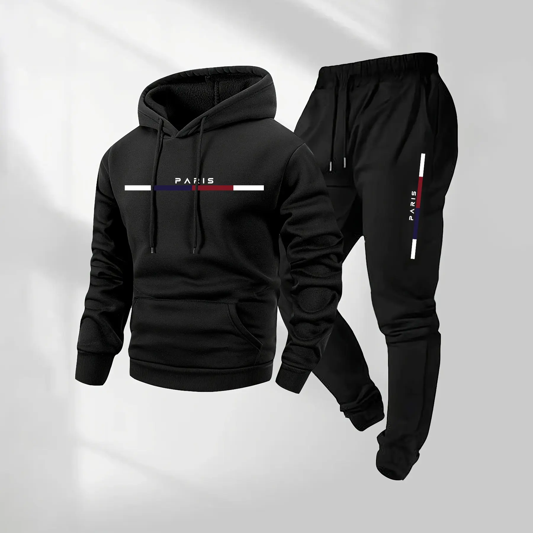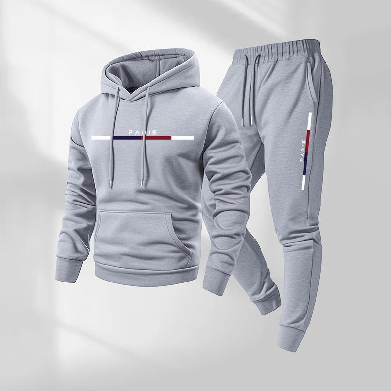 Men's Paris Letter Printed Hoodie and Drawstring Sweatpants Set