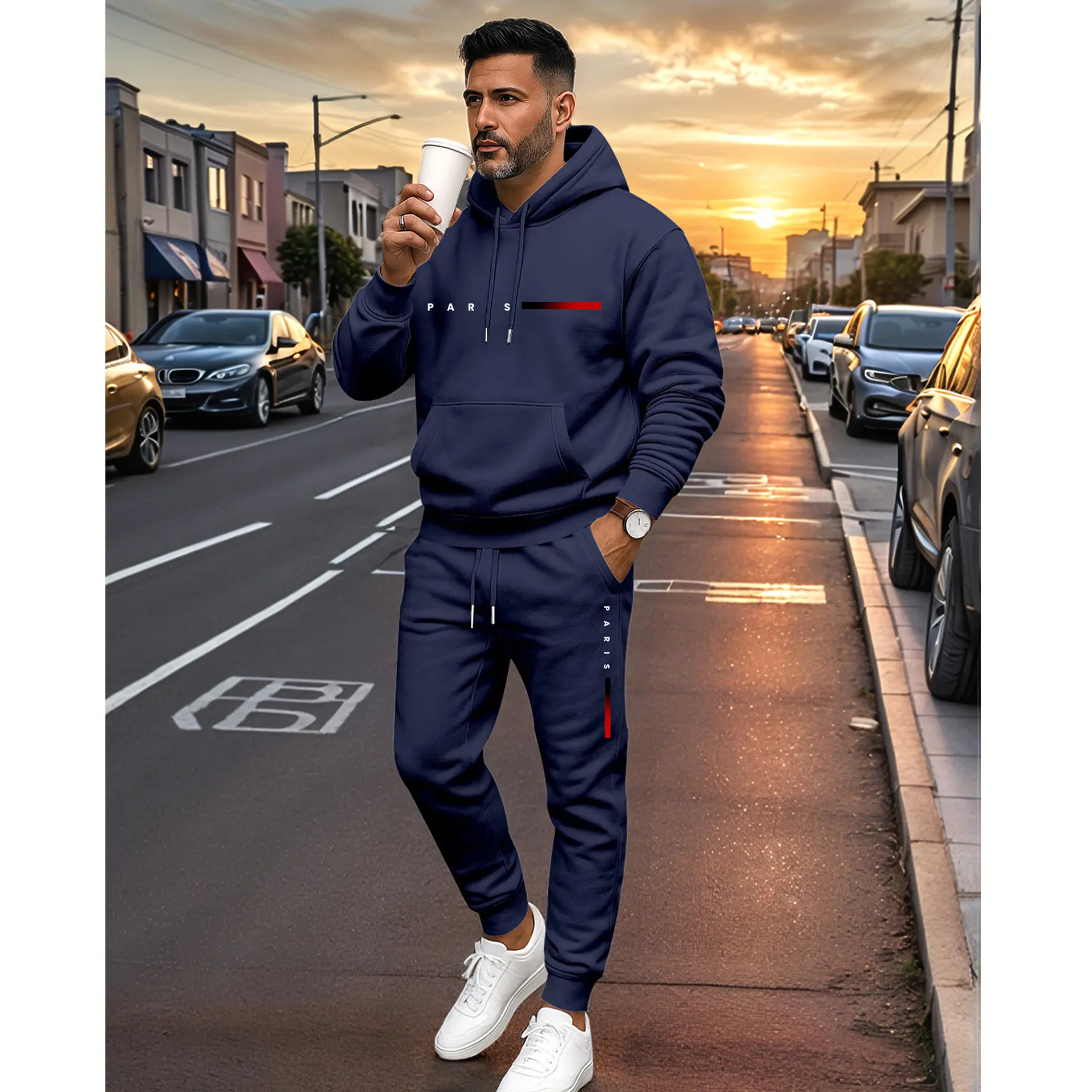 Men's Paris Letter Printed Hoodie & Drawstring Sweatpants Set