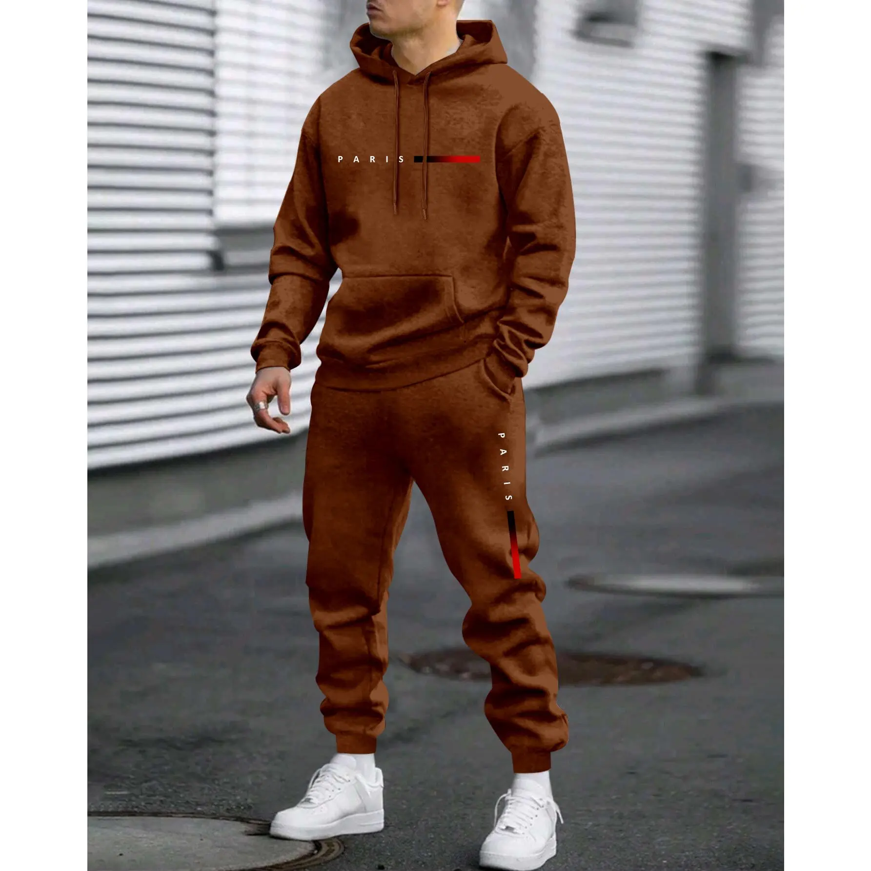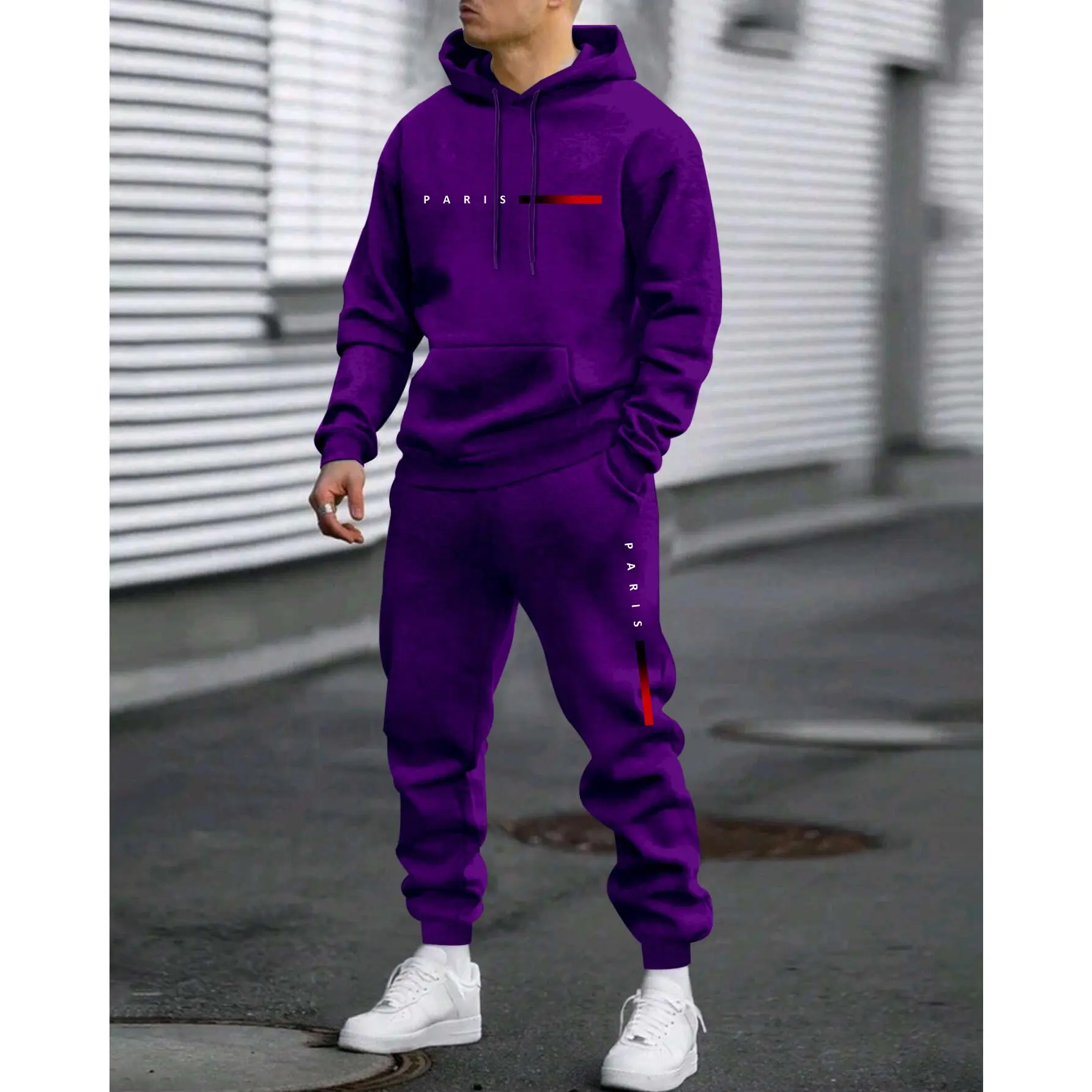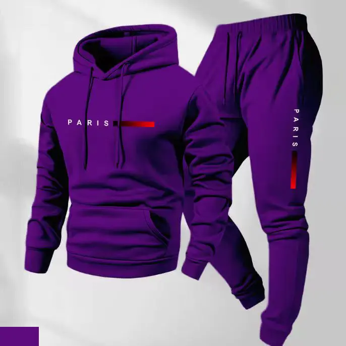 âš Upgrade your casual wardrobe with this Men's Paris Letter Printed Hoodie & Drawstring Sweatpants Set. Made from 100% polyester, it provides a loose fit for movement. Ideal for spring, autumn, and winter, it's perfect for sports, daily wear, and leisure. The letter print adds a modern flair. đ