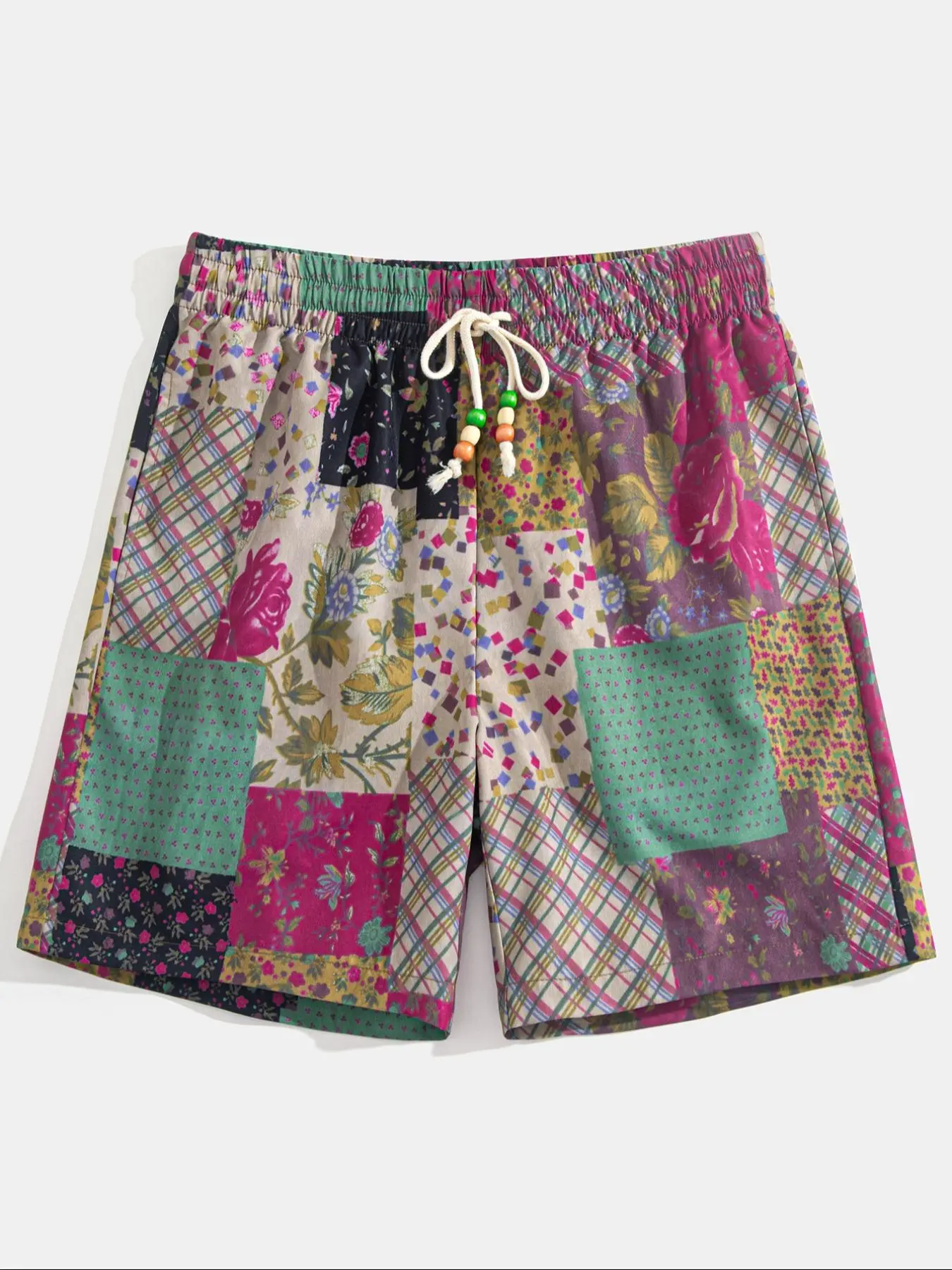 5. Men's Patchwork Print Shorts, Casual Streetwear Shorts, Casual Comfy Loose Fit Drawstring Shorts for Summer, Men's Bottoms for Beach Vacation