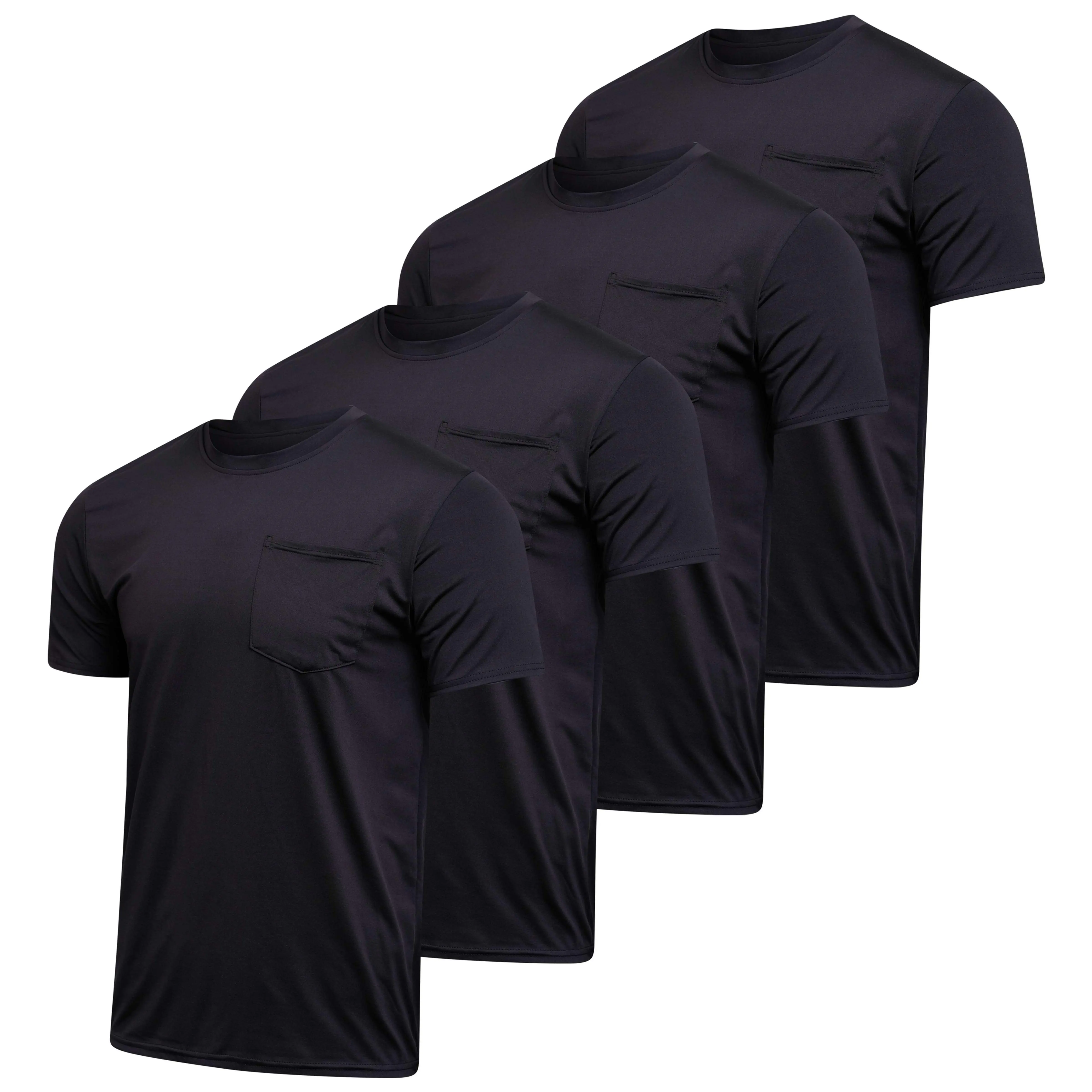4-Pack: Mens Dry-Fit Moisture Wicking Active Athletic Performance Short Sleeve Crew T-shirts With Pocket are comfortable, durable, and stylish.