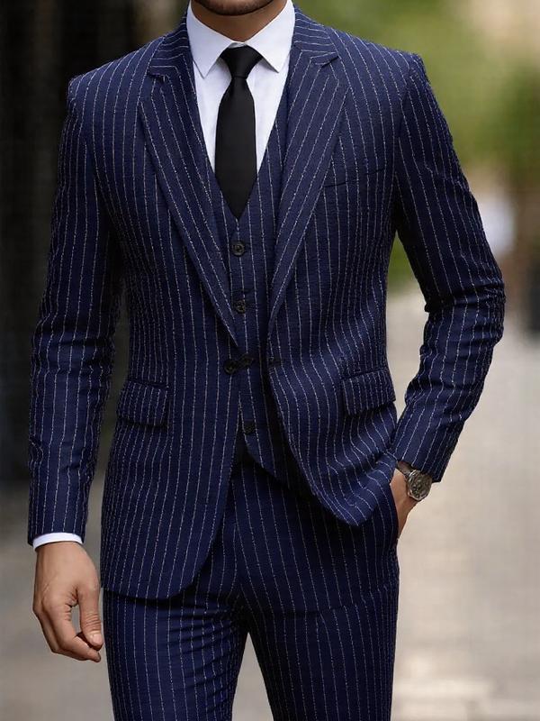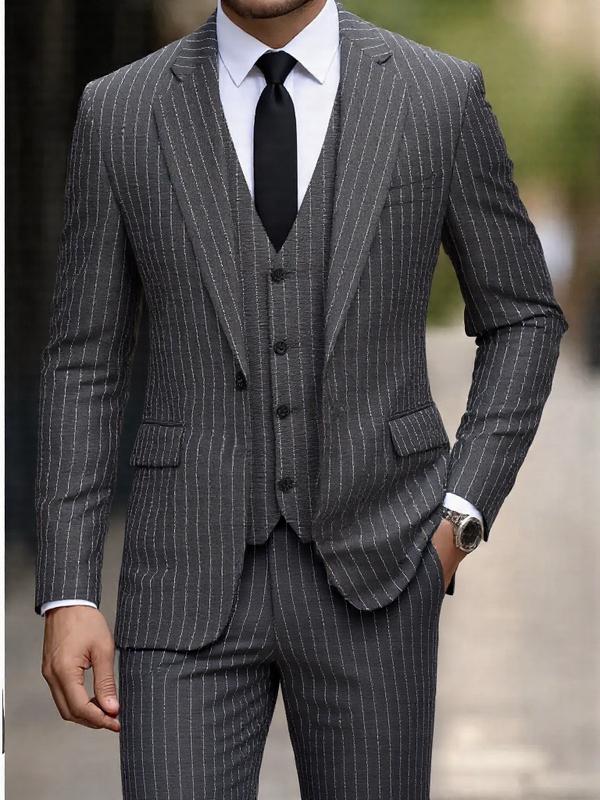 Men's Long Sleeve Slim Fit Pinstripe 3 - Piece Suit for Business Casual, Semi - Formal Wedding & Prom Occasions
